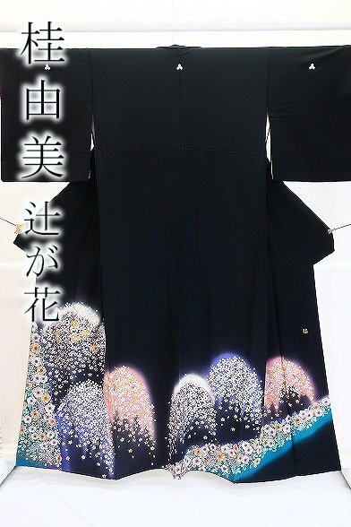 【送料無料】黒留袖 桂由美 銀彩友禅 辻が花 落款入り 袷 身丈159cm 裄丈64.5cm お洒落 正絹 仕立て上がり 着物フィ m-7635 |