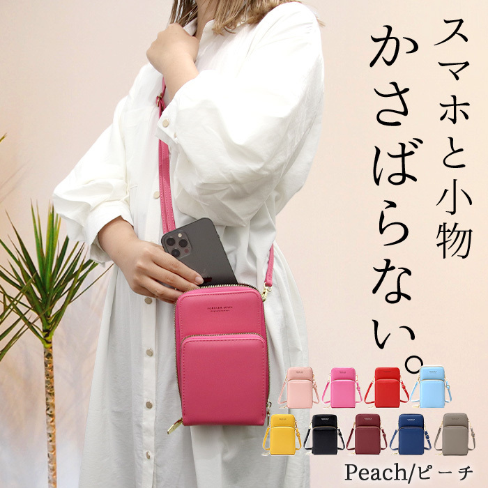 商品名 | スマホショルダー 人気 安い スマホポーチ スマホポシェット【ピーチ】 iPhone サコッシュ レディース かわいい おしゃれ 斜めがけ バッグ 携帯 カード ママ メンズ |