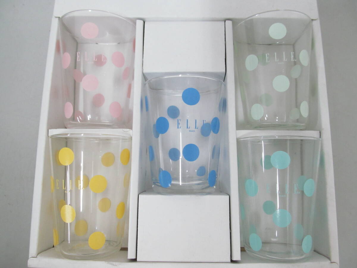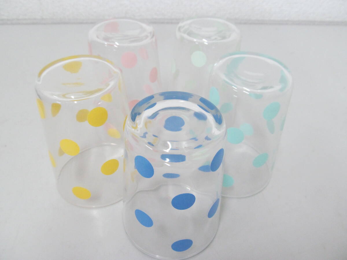 ★☆ELLE カメイガラス 水玉柄 ミニグラス コップ タンブラー 5個セット☆★