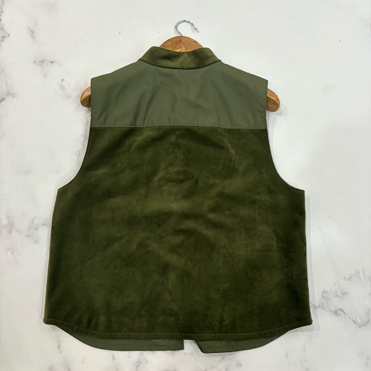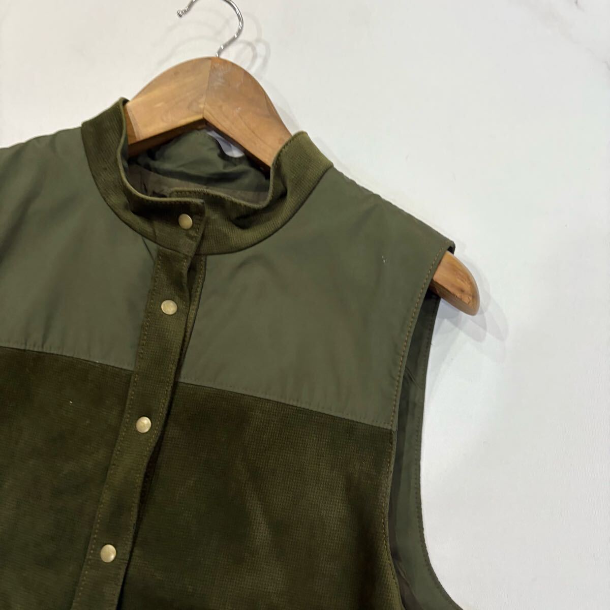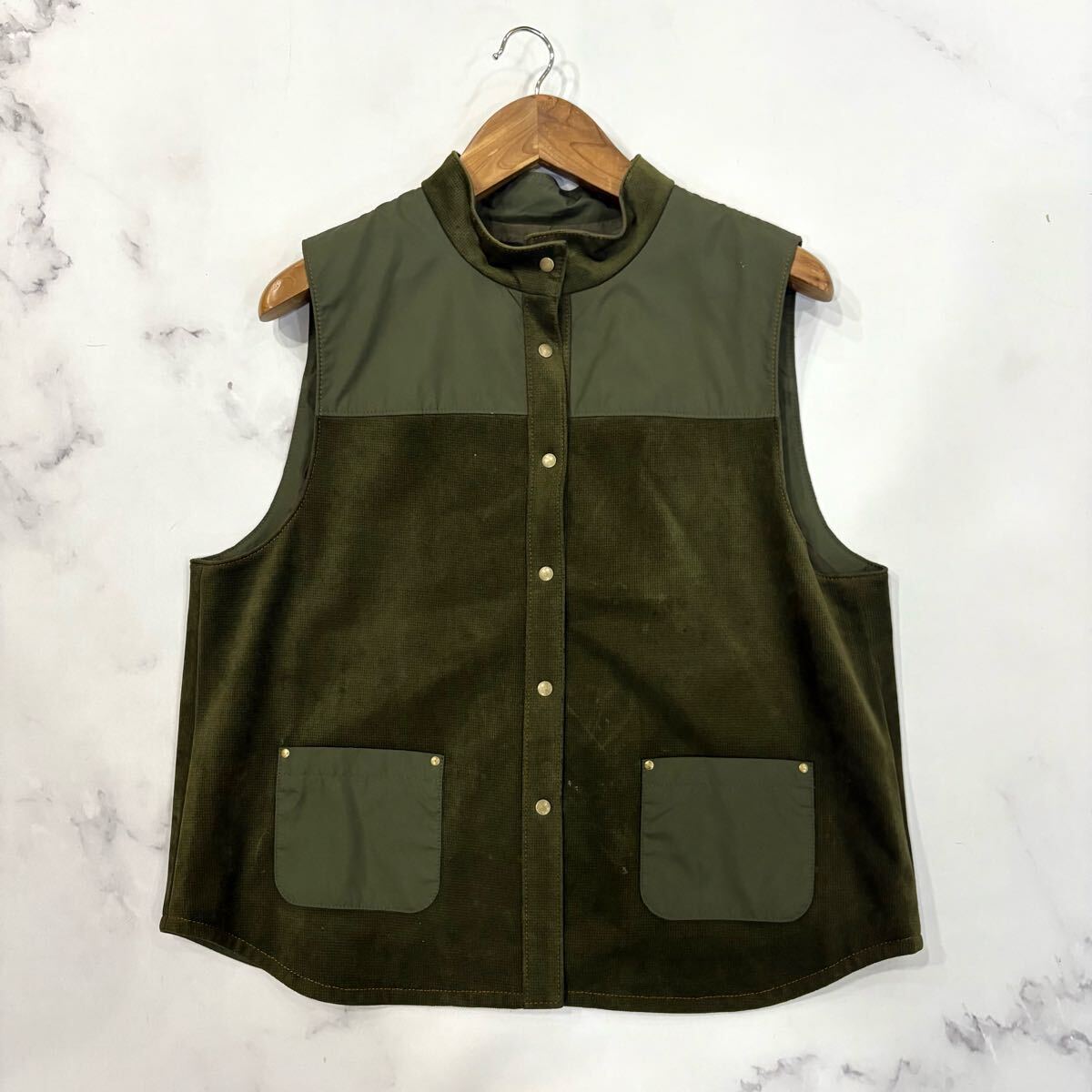 AH■ 良品 '日本製' 高級エレガント服 Leilian レリアン 異素材切り替え ベスト ジャケット 15+ レディース 婦人服 トップス 古着 カーキ系