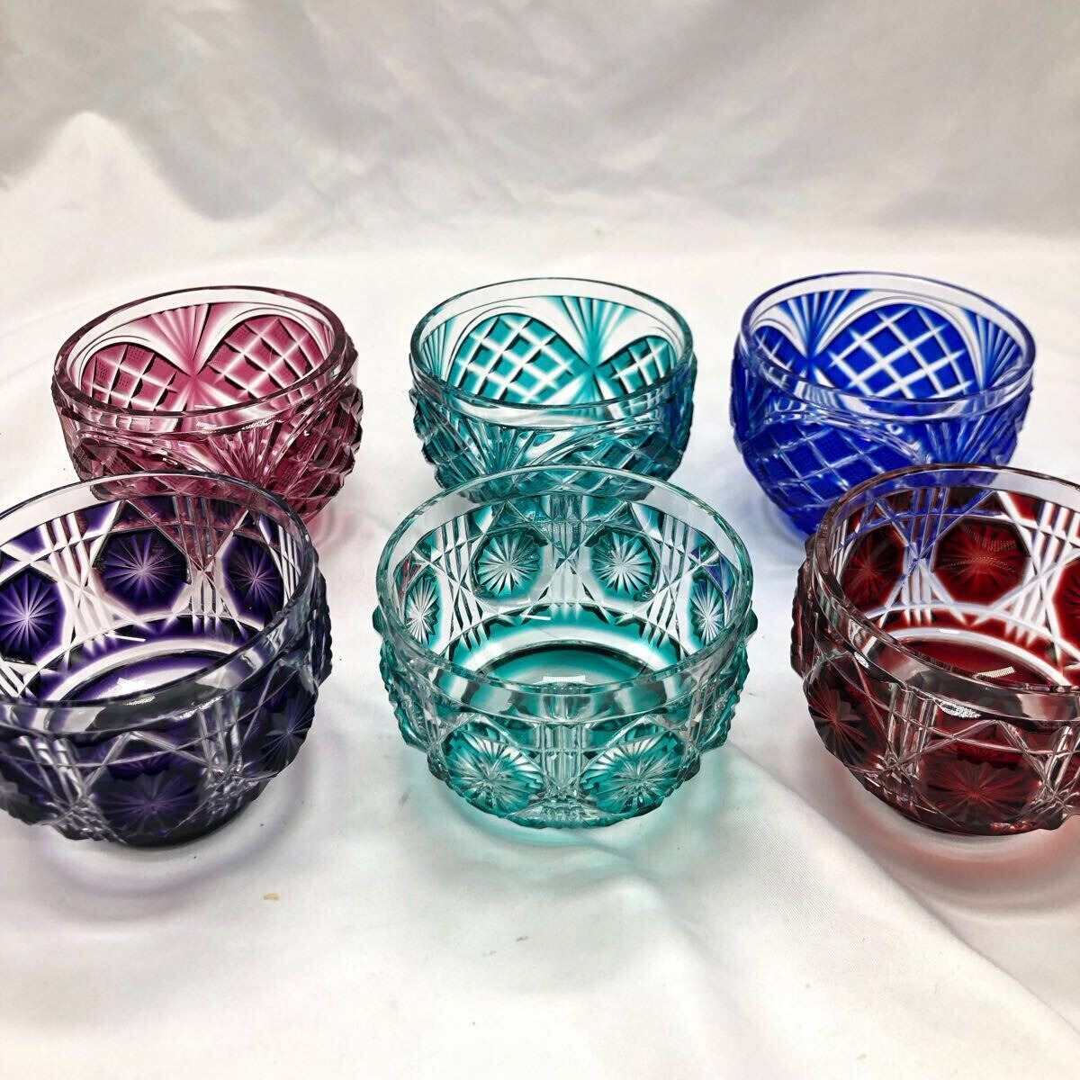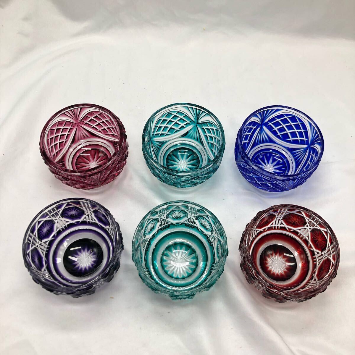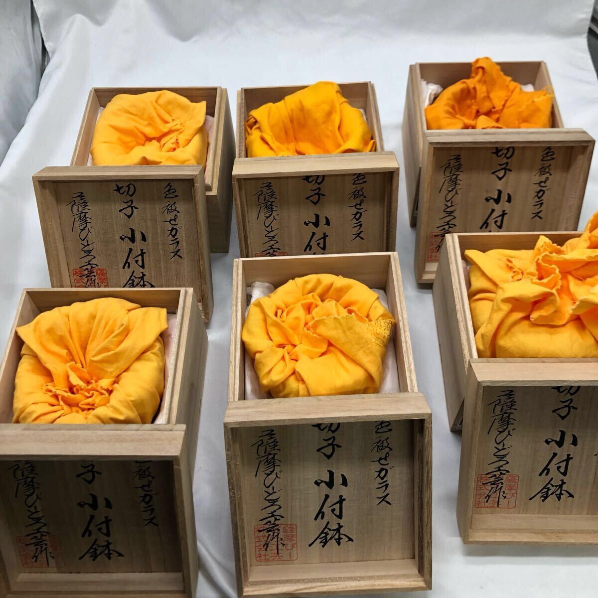 ・品名:薩摩切子 6個まとめて 復元 切子 箱付き 中古 色被せガラス びーどろ工芸 小鉢 食器 小付鉢 KN-RO54