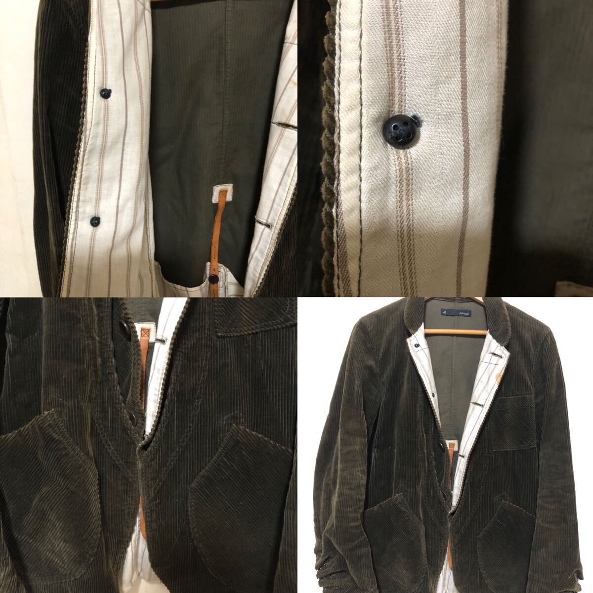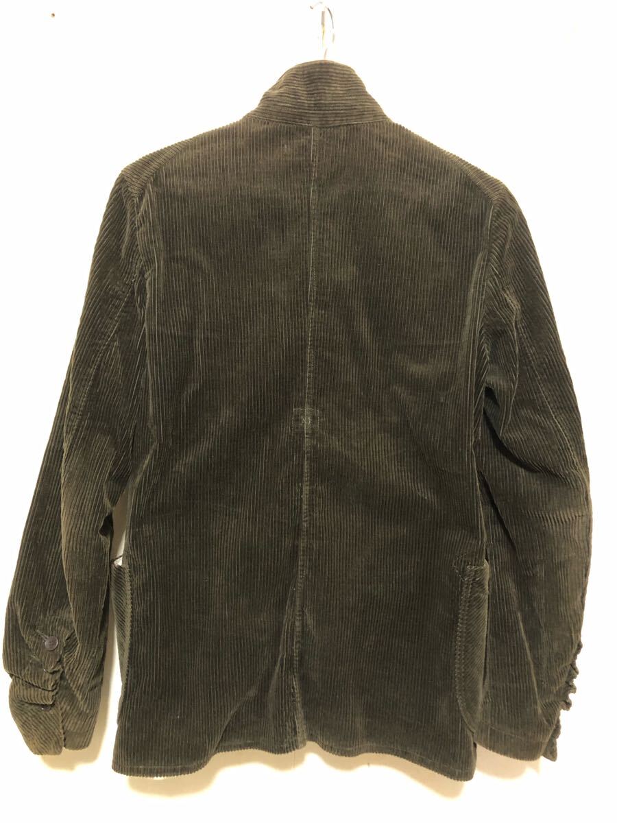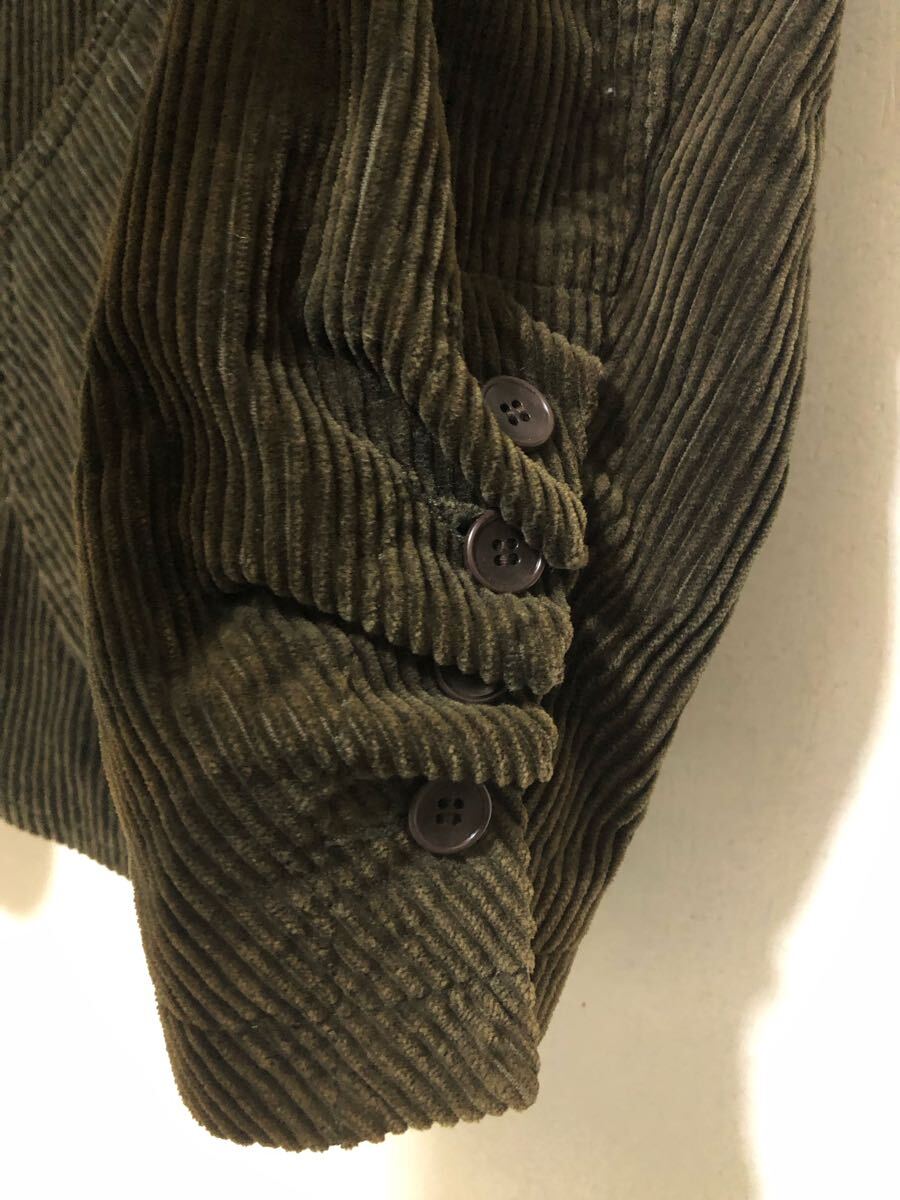緑とダークブラウンの中間のような、光の加減で独特の表情を見せる太畝コーデュロイジャケット