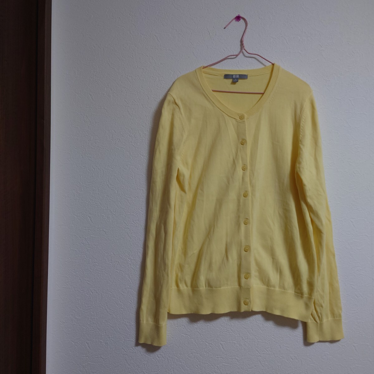 柔らかい素材の黄色いカーディガン、Mサイズ