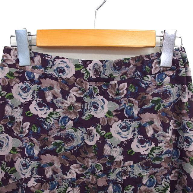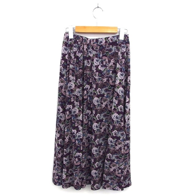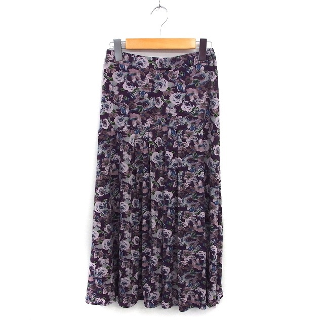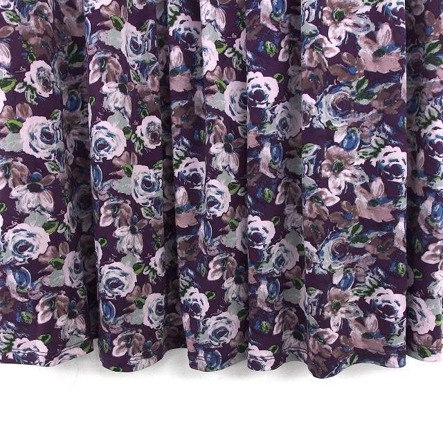 ローラアシュレイ LAURA ASHLEY 花柄 フレア スカート ロング ゆったり ストレッチ 38 紫 パープル /NT2 レディース