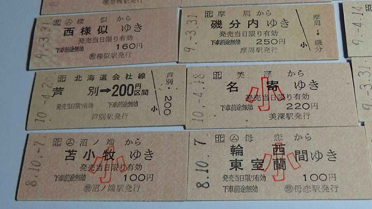 JR北海道会社線の切符。 B型硬券乗車券12種12枚。 本券は、コレクション用です、実際に使用することは出来ません。 当時、趣味購入。 切符に目立つような折れ・スジ等は無いようですが、経年によると思われる劣化、日焼け、ソリ等が認められますので、必ず画像にてご判断をお願い致します。 ご入札に際して画像を良く、ご覧頂き十分考慮の上、慎重に入札をお願い致します。 入札に辺り、自己紹介欄をご一読お願い致します。 現状渡しです。 ノ-クレ-ムでお願いを致します。 ※注意 ●尚、商品は厚紙にて保護の上、梱包を致します。 ●普通郵便・スマ-トレタ-便の場合、不着等の郵送事故の場合でも保証は出来ませんので、特定記録郵便(追跡有り・保証なし)・レタ-パック(追跡有り・保証なし)又は簡易書留(追跡有り・保証有り)をお勧め致しますので、ご精算時にお申し付け下さい。 ●●落札者様へのお願い●● ●ヤフ-の仕様が変わり、落札者様のIDが表示されなくなりましたので、落札後は速やかにご連絡を頂きます様、 ご協力をお願い致します。