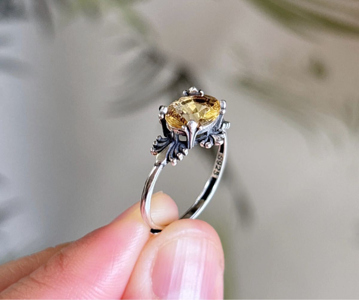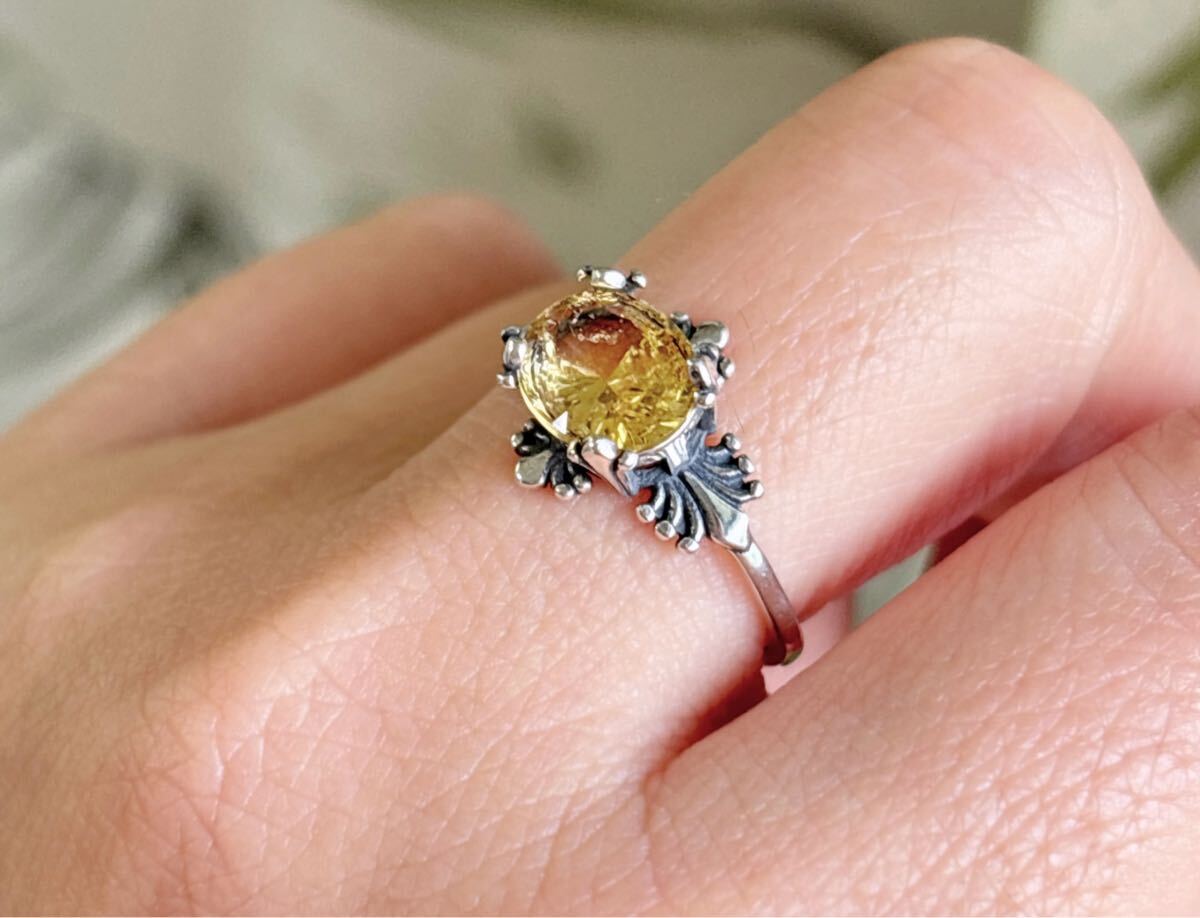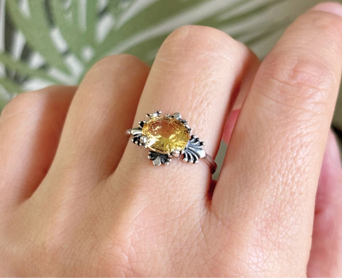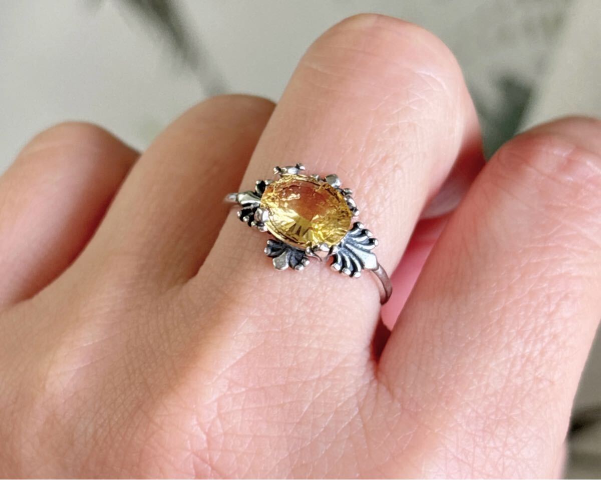 天然石 逸品シトリン(黄水晶)リングのサイズ約:8mm*9mm*厚さ4.5mm;