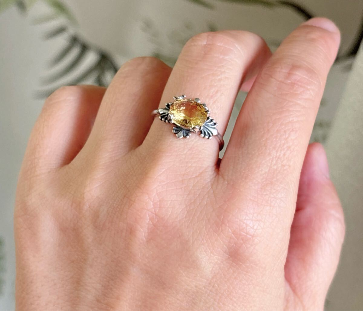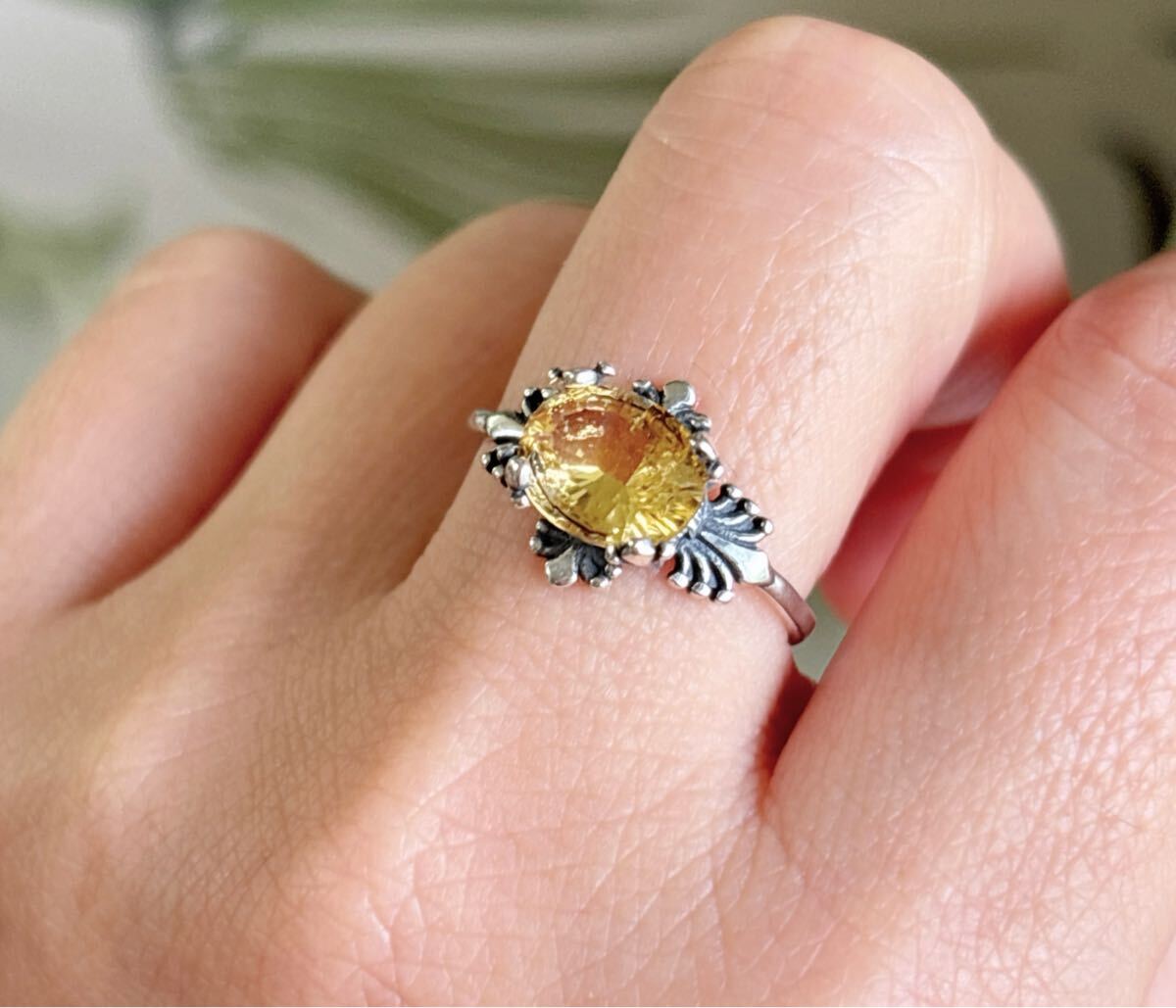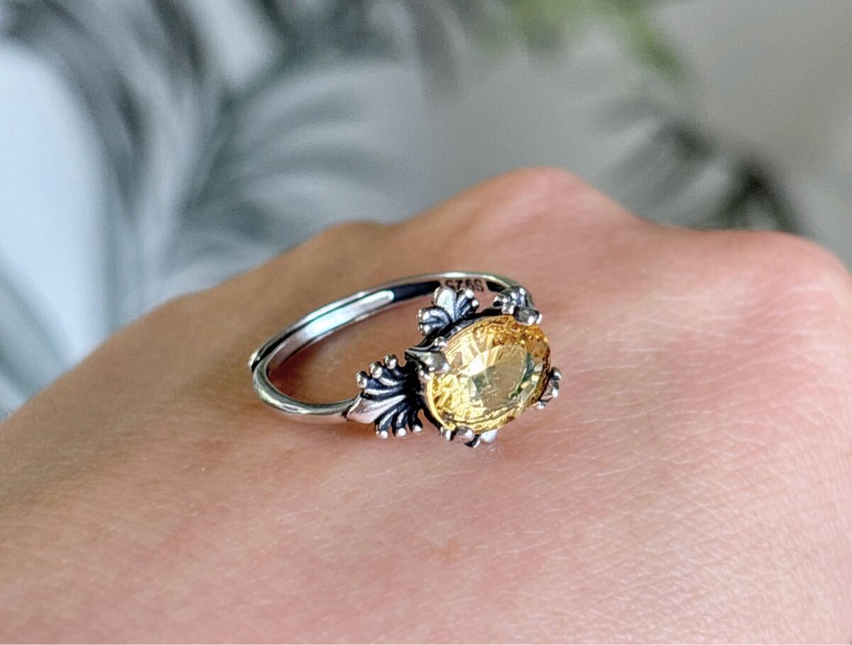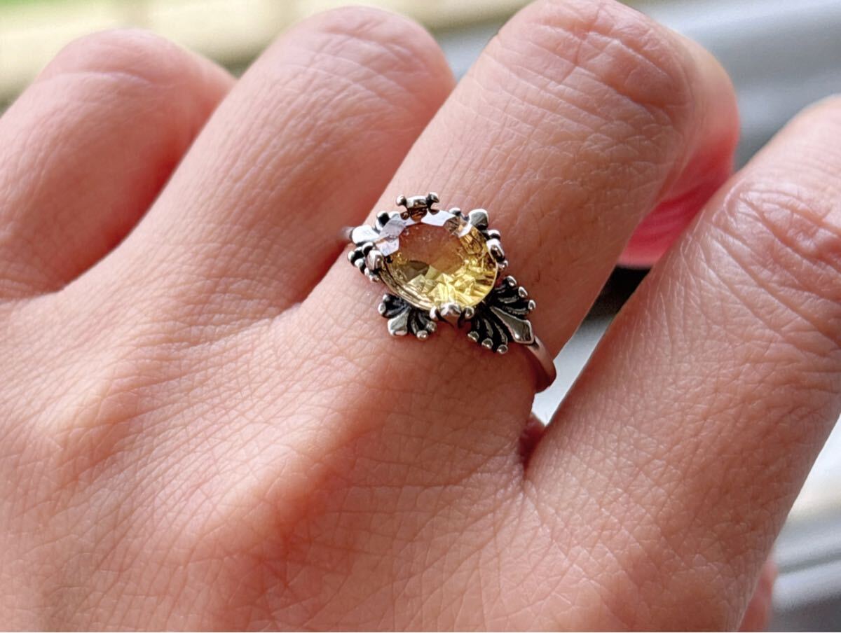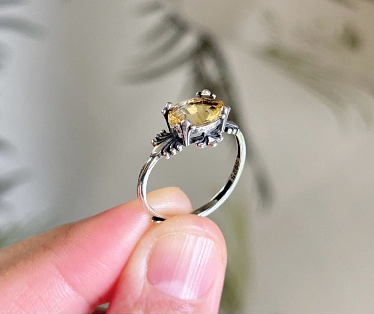 天然石 逸品シトリン(黄水晶)リングのサイズ約:8mm*9mm*厚さ4.5mm;