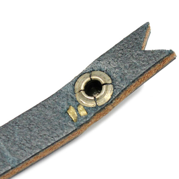 スペック | スナップ部分にオリジナルのハット型スタッズを被せてレザーの先端を蝶ネクタイをイメージした形にカット。 程良い厚さでハリのあるオイルドレザーを切り出し、金具は全てさりげない程度にアンティーク加工を施したブラスを使用。 |