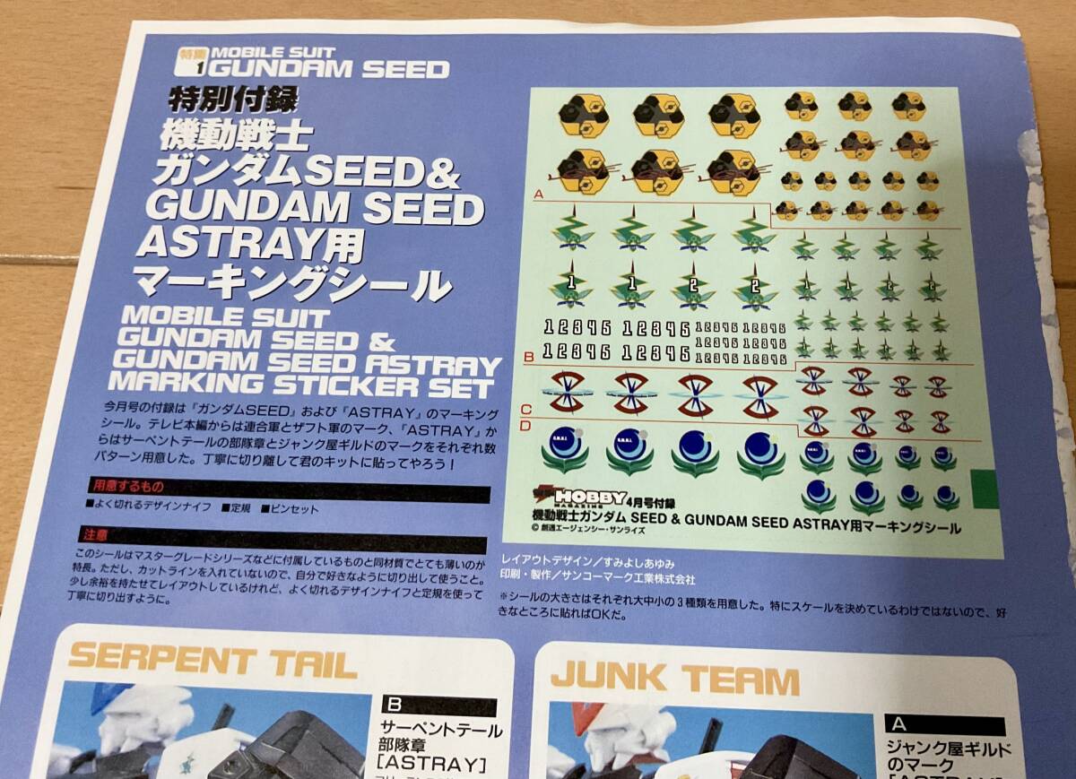 ガンダムSEED&GUNDAM SEED ASTRAY用マーキングシール電撃ホビーマガジン付録連合軍ザフト軍サーペントテール部隊章ジャンク屋ギルドマーク