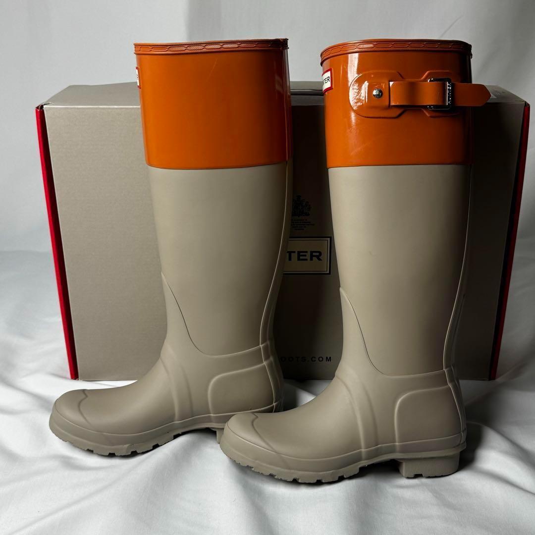 FSC認証の天然ゴムから作られたハンターのアイコンであるオリジナルトールブーツが、光沢のあるシーズナルカラーブロックアッパーでアップデート。オリジナルトールブーツは、1956年に初めて導入されたハンターブランドを象徴する一足で、28のパーツからハンドクラフトされているほか、3日間にかけて組み立てられたり保護力のために加硫していたりと、こだわりの仕上がりとなっています。ハンターのオリジナルトレッドパターンと、快適なリサイクルポリエステルライニングが備わったブーツです。すべてのハンターブーツは靴下を着用し、肌をゴムとの接触から保護することをお勧めします。すべてのハンターブーツソックスは、当社のブーツシリーズと合わせて使えるよう特別に設計されており、ブーツのエッジを覆うために上部を折り畳むことで、摩擦を防ぎます。