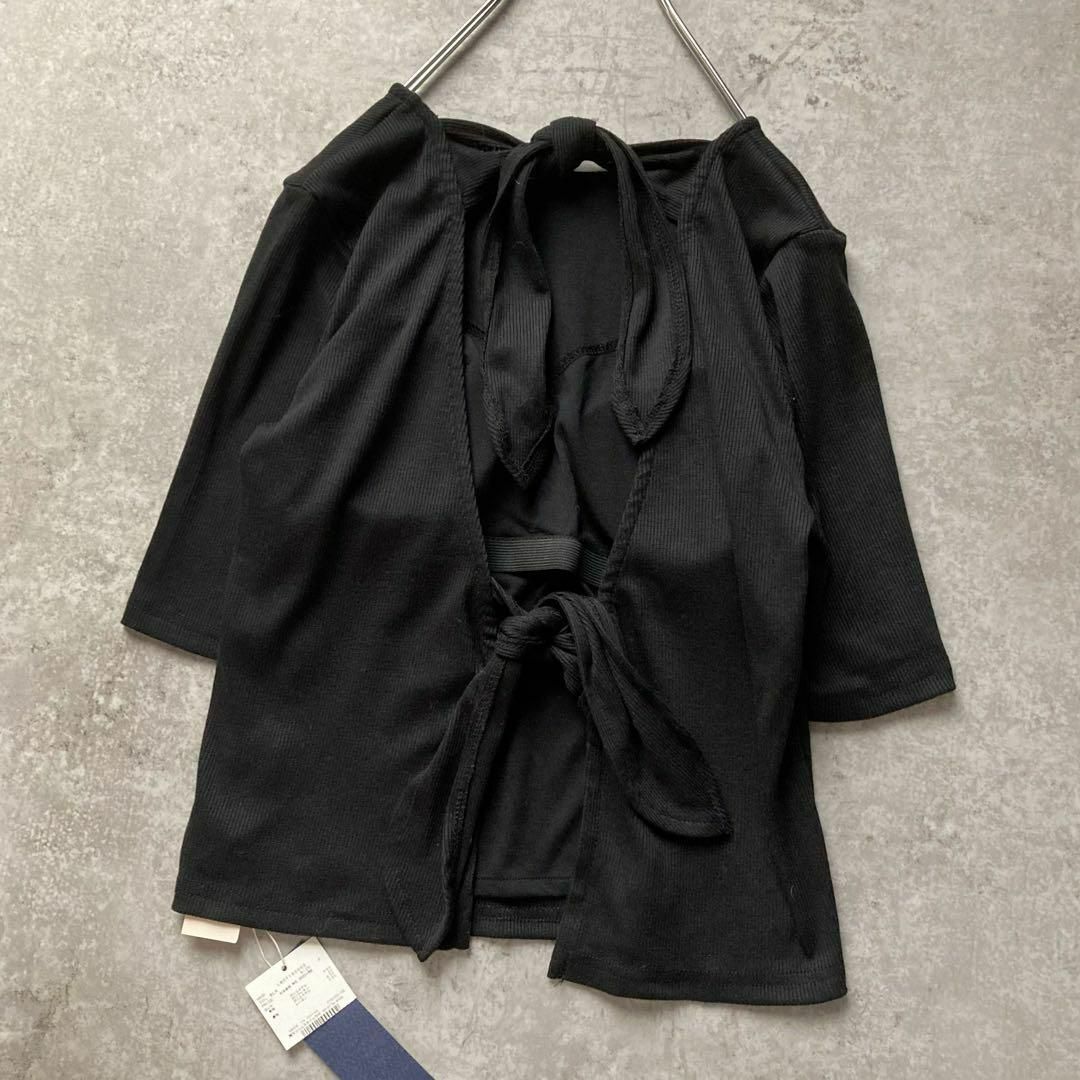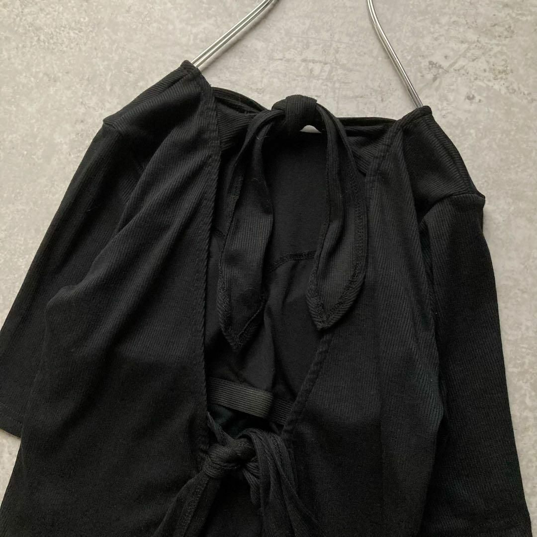 背中は首とウエストで結ぶデザインなので、フィット感やシルエットは自由自在。背中が開いている分、やや長めの五分袖に仕上げているのもポイントです。