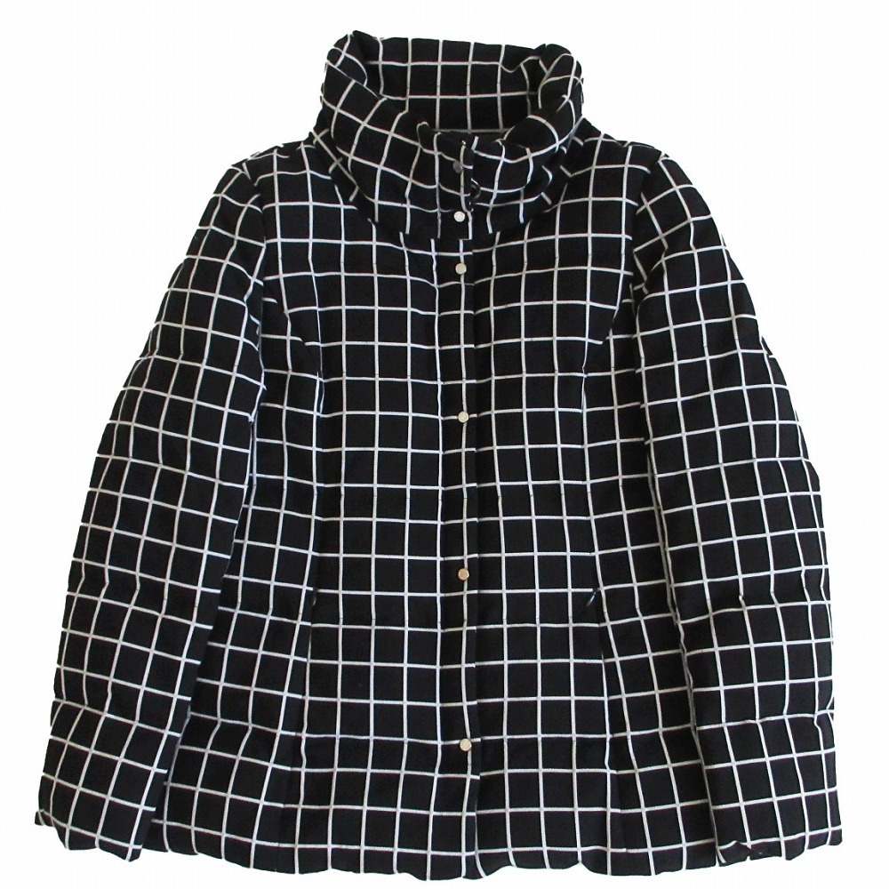 【pierre cardin ピエールカルダン チェック柄 スタンドカラー ダウンジャケット ジップアップ ブラック サイズ40 レディース】 | |