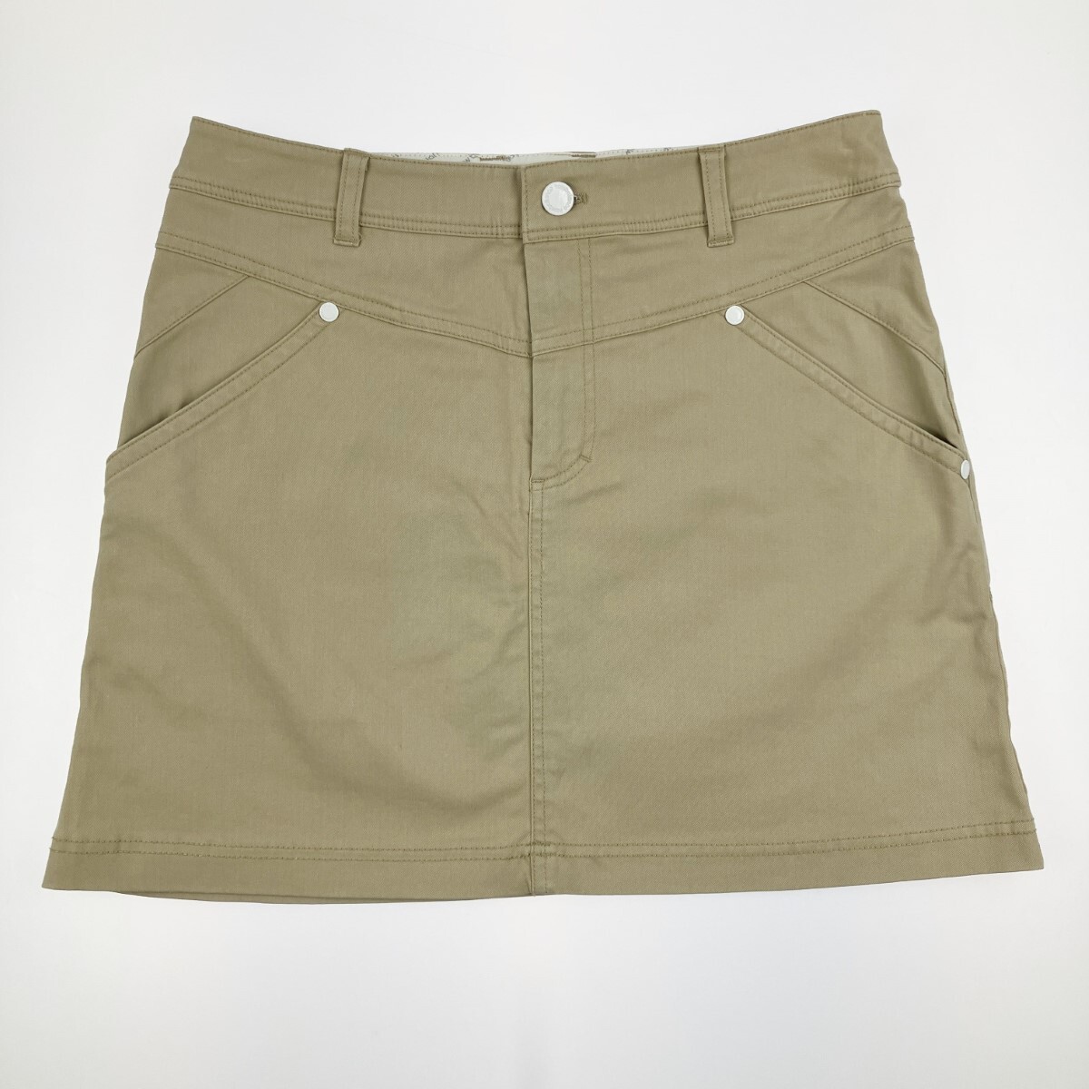 【商品名】中古 NEW BALANCE ニュー・バランス レディース ゴルフウェア ストレッチ 犬ワッペン付 スカート ベージュ やや傷や汚れあり