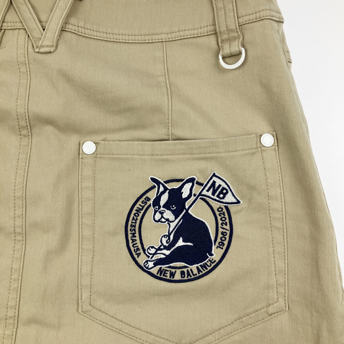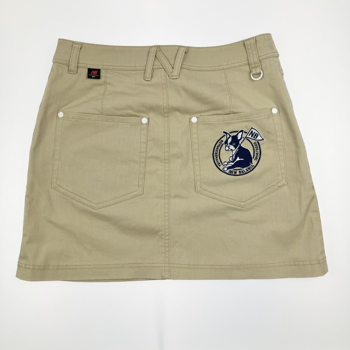 ▽▽ NEW BALANCE ニュー・バランス レディース ゴルフウェア ストレッチ 犬ワッペン付 スカート ベージュ やや傷や汚れあり