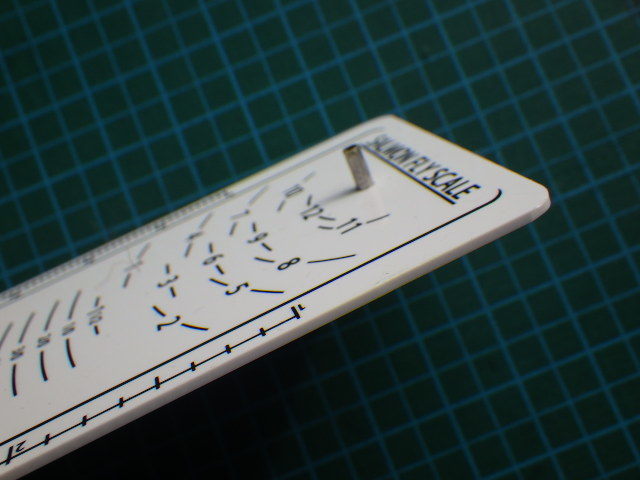 少し厚みのあるプラスティック製(手元もスケールで測って1㎜強)