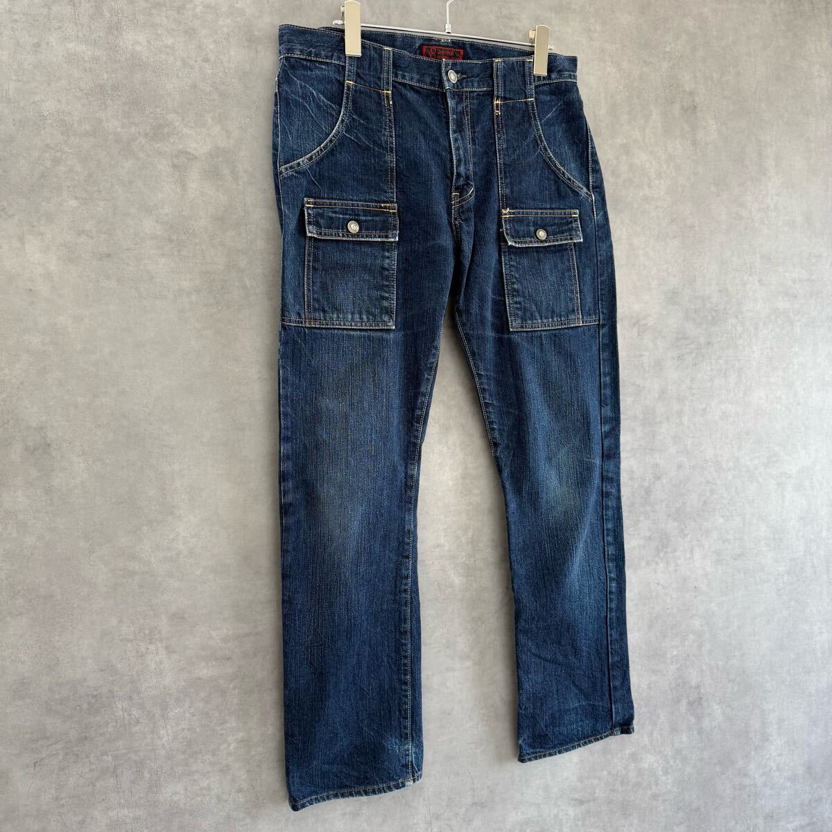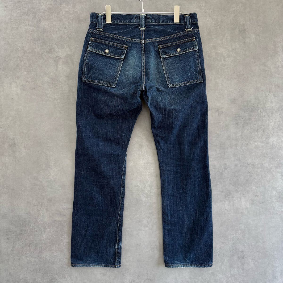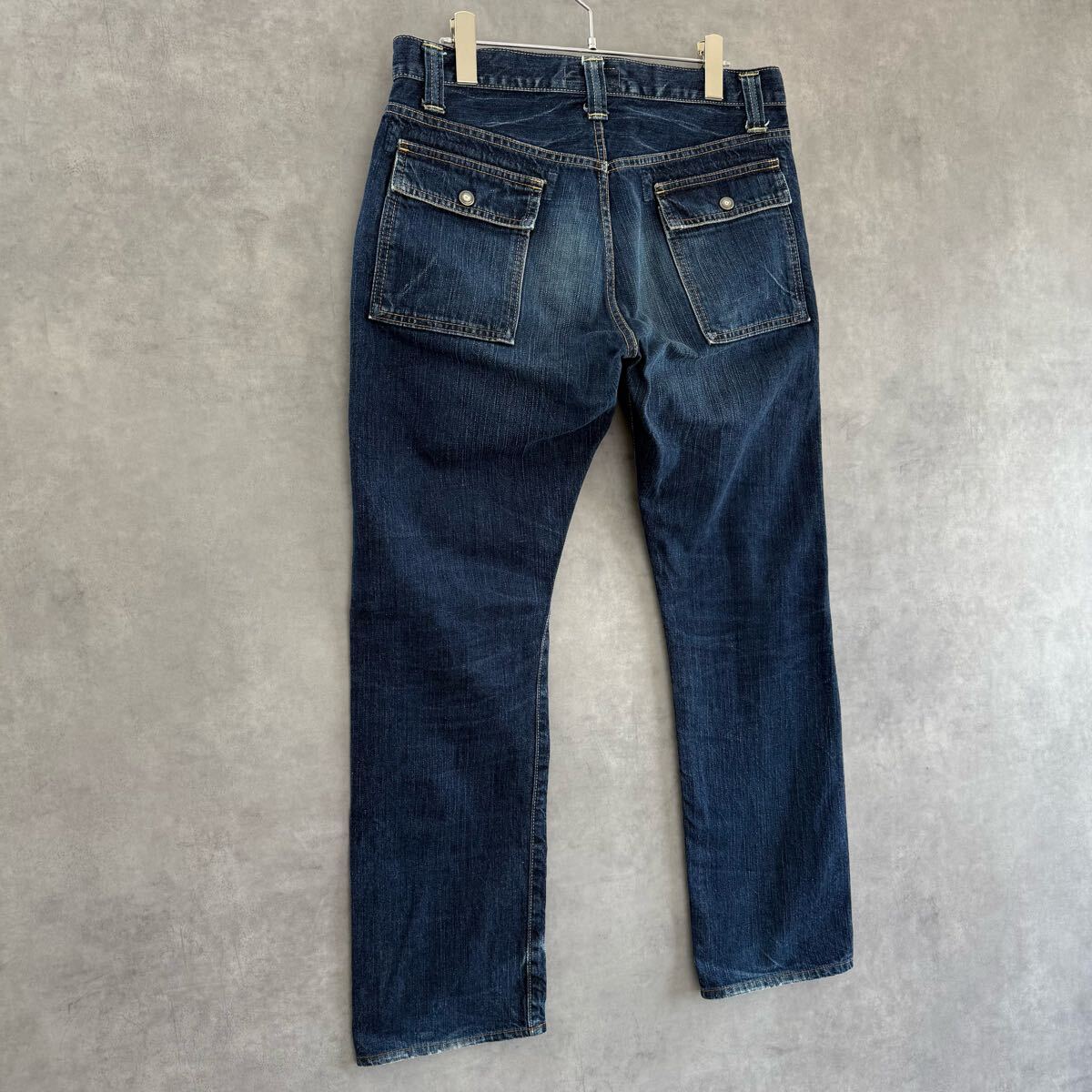 ◆実寸:ウエスト78㎝/股上25㎝/股下74㎝/ワタリ幅30㎝/裾幅19.5㎝/総丈98㎝