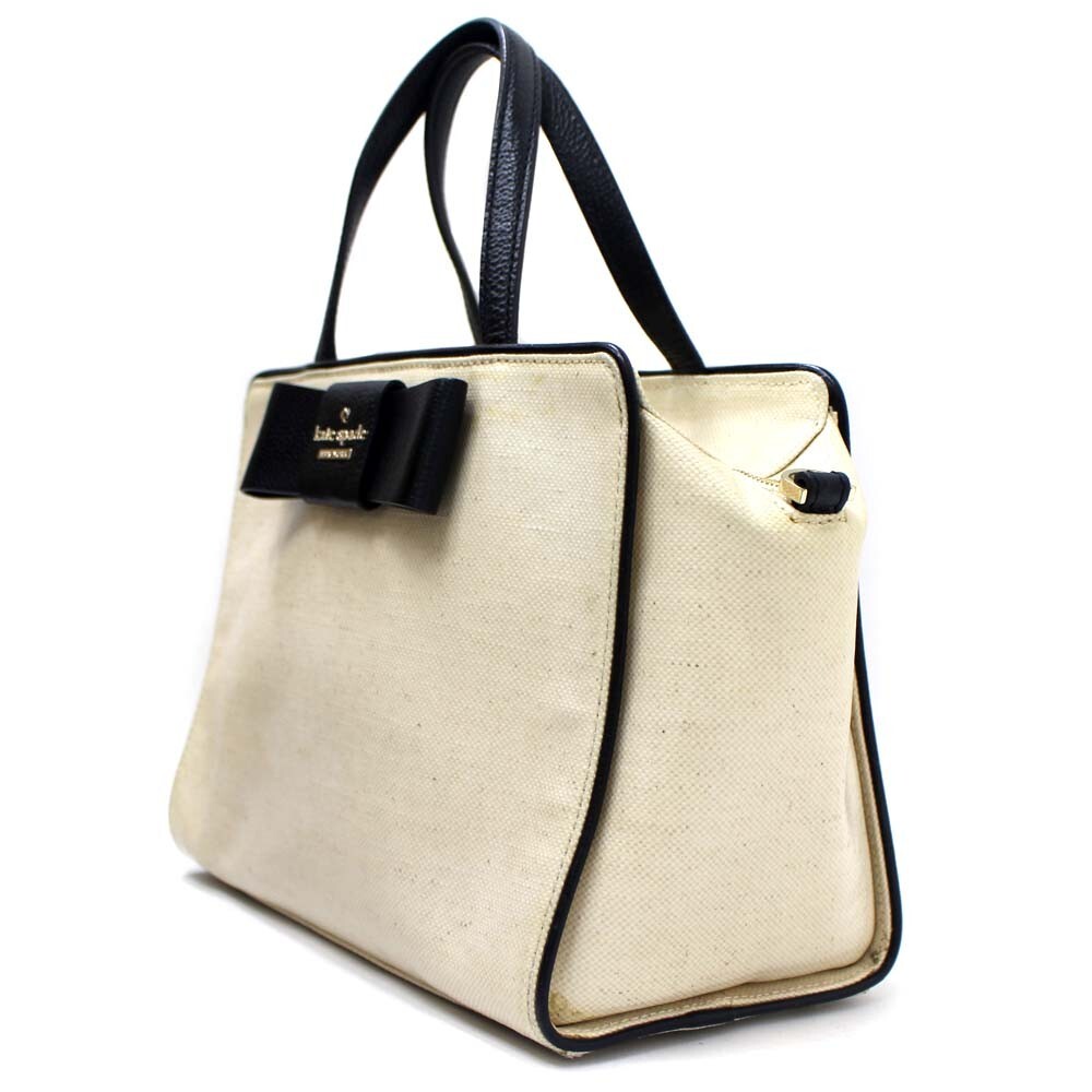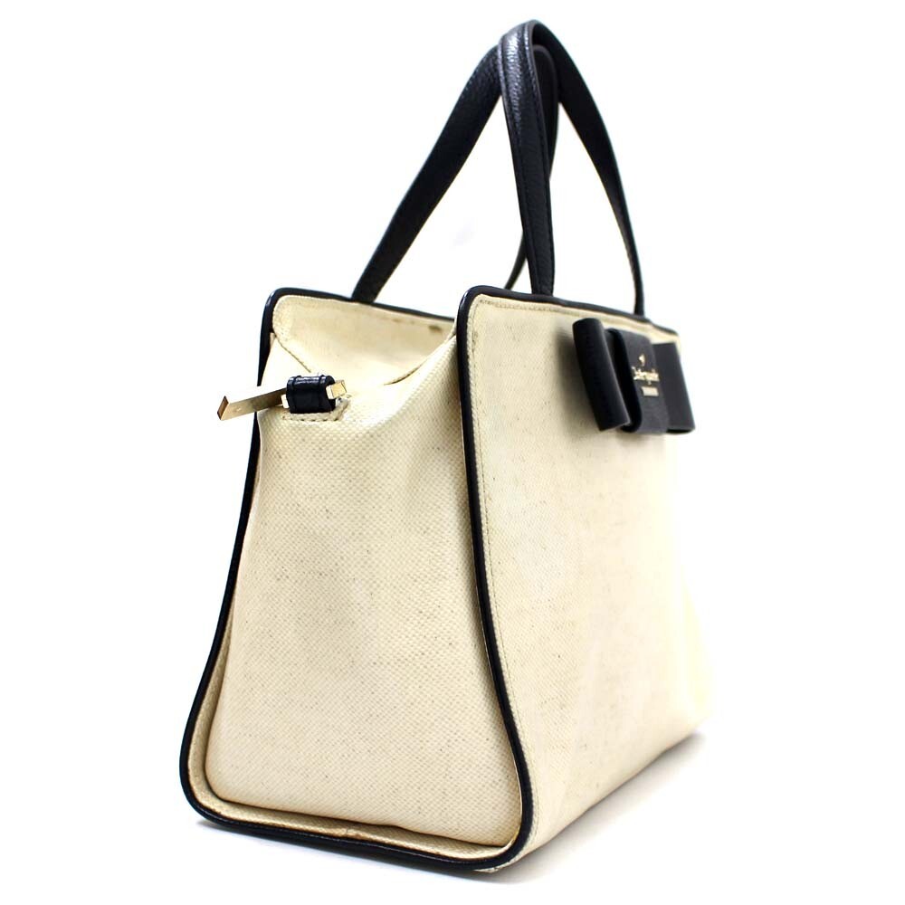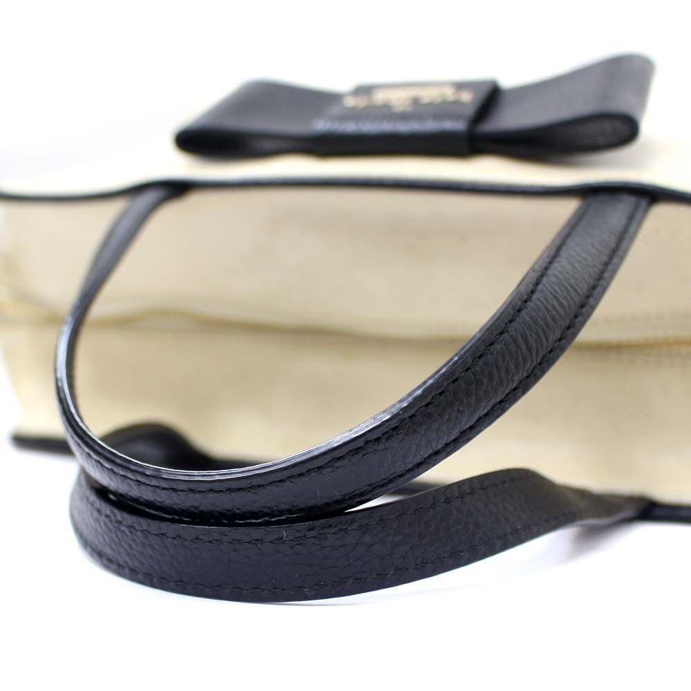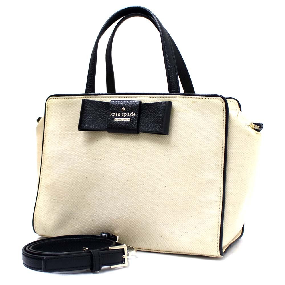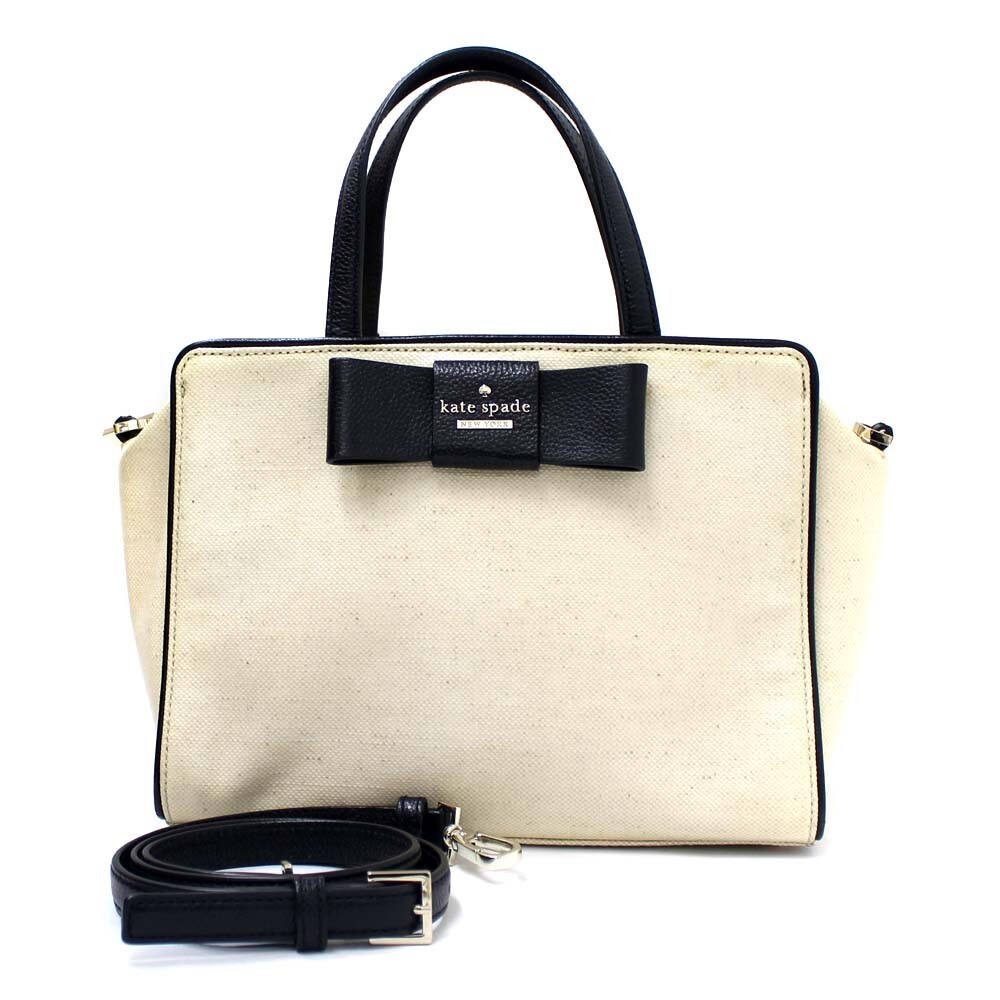 ケイトスペード リボン ハンドバッグ レディース コーティングキャンバス ホワイト ブラック PXRU5923 中古 Kate Spade