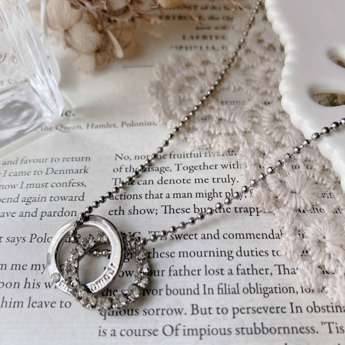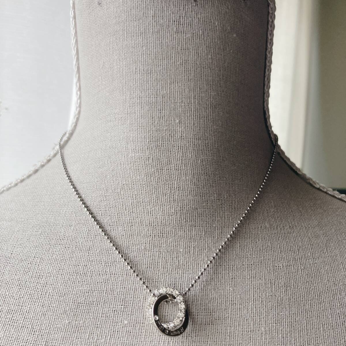 ネックレス ショート シルバーカラー ラインストーン リング☆vintage jewelry accessoriesR0440