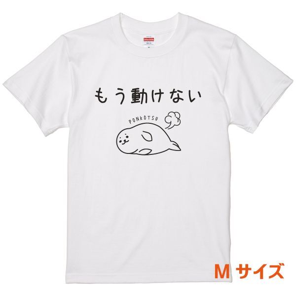 ★『もう動けない』癒しのアザラシTシャツ 5001-01【ホワイト】【Mサイズ】