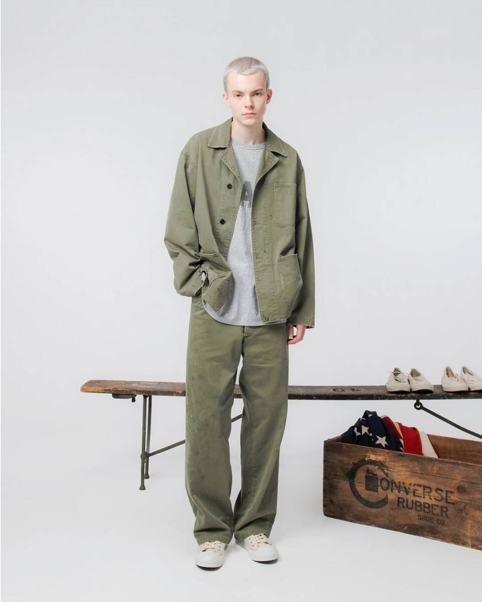 そんな名品を忠実に再現するため、素材から徹底的に向き合い、今回の再現を実現しました。生地にとどまらず、ブランドならではのディティールや、使い古されたことによる破れリペアなど、独自のこだわりが光る一着です。