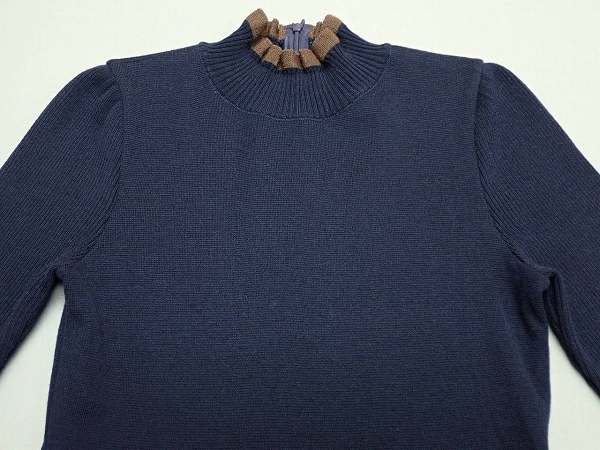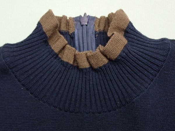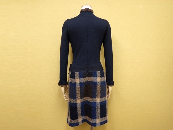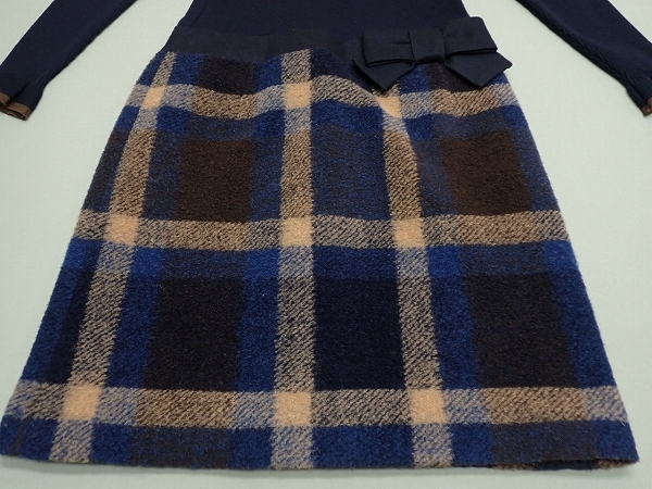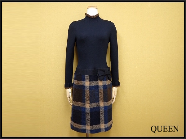 | 色 紺×茶×ベージュ 素材 表地 ニット ウール100% スカート ポリエステル78% ウール22% 別布 ウール82% ナイロン18% 裏地 キュプラ100% | |