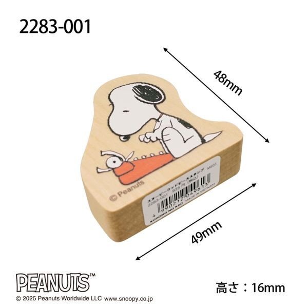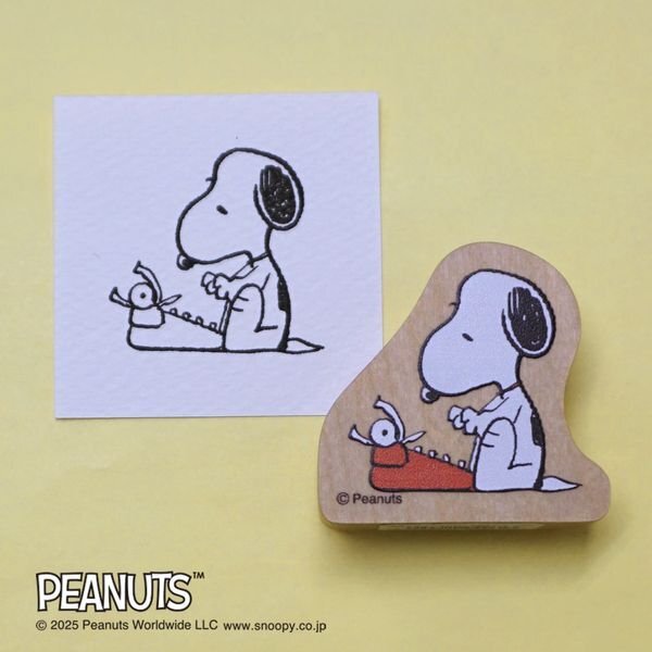 ※複数商品購入の場合は、重複して表示させますが、重さ大きさなどを見て送料を修正いたします。※ 使用には別途スタンプ台が必要です。スヌーピーのダイカット木製ラバースタンプです。雑貨としてもかわいらしい見た目をしていて、ついつい集めたくなるデザインです。スヌーピーがタイピングをしている絵柄。商品サイズW49×H48×D20mm