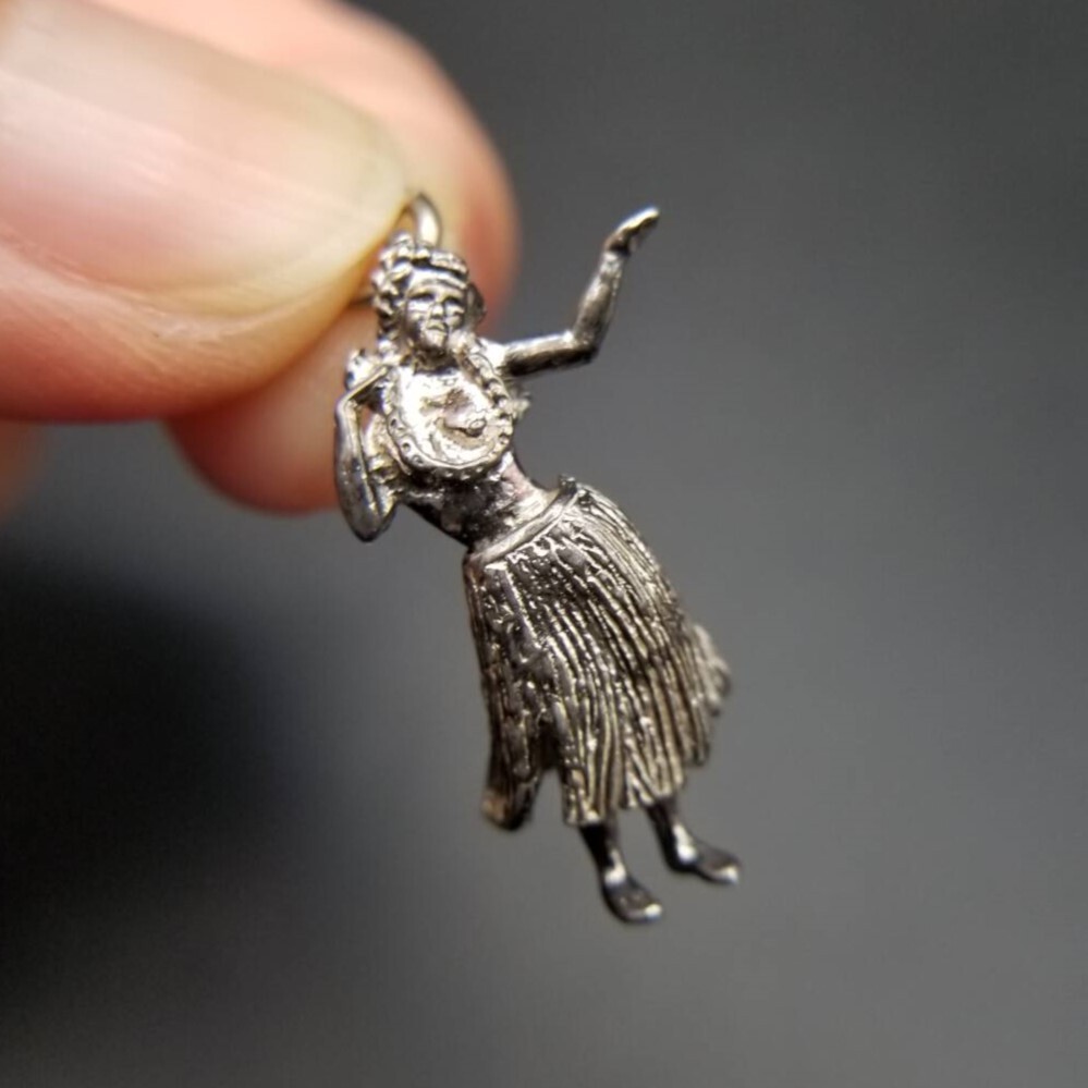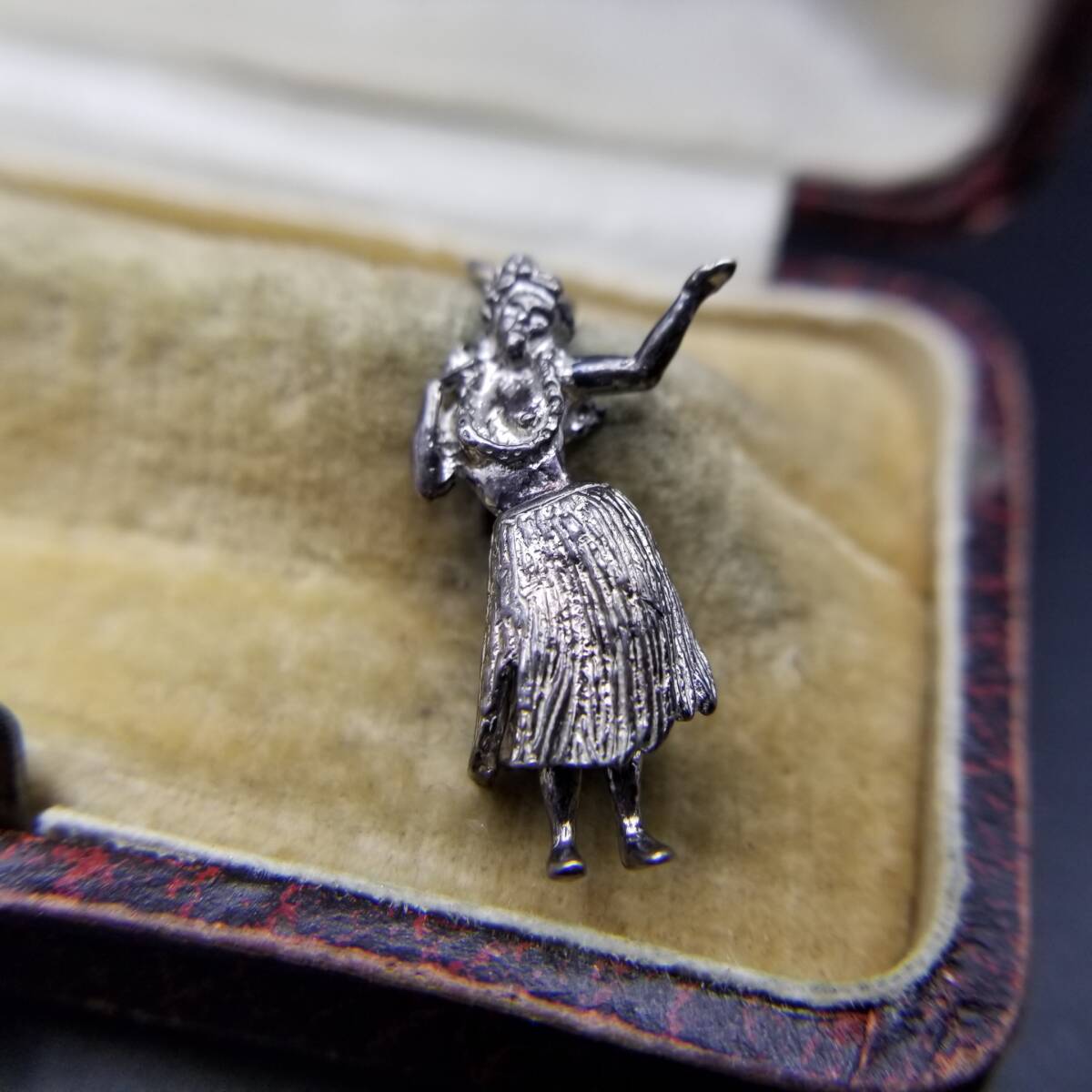フラダンスをする女性 ハワイアン 925 シルバー ヴィンテージ ゆらゆら チャーム 銀 レトロ 小ぶり ペンダントヘッド Y23-L