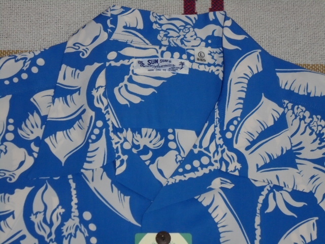 25 東洋 サンサーフ SS39421 125 ブルー L 半袖 アロハ シャツ SUN SURF ハニーサックル