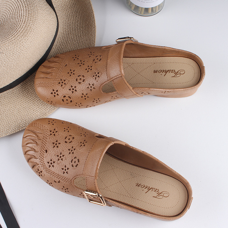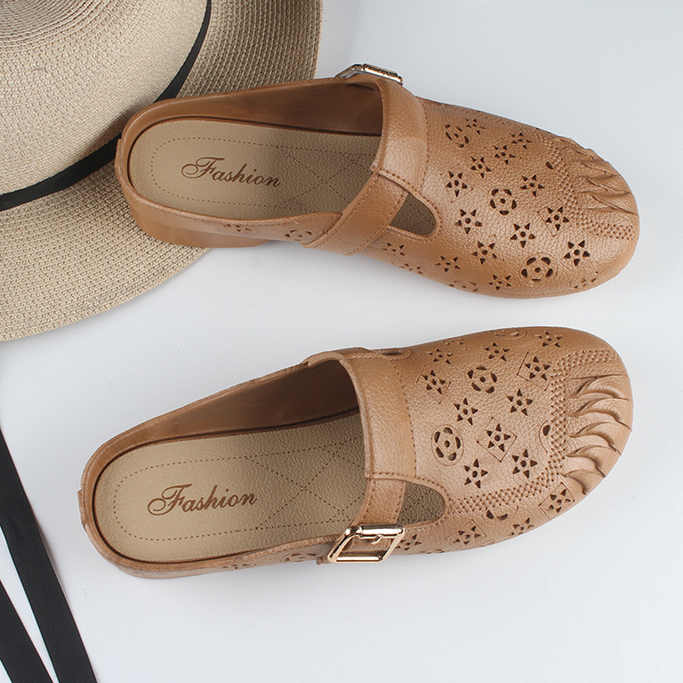 スリッパ フラットシューズ レディース スリッポンシューズ 靴 ローヒール サンダル 撥水 夏 美脚 通気性 ブラウン 25-25.5cm