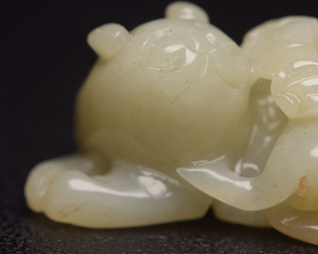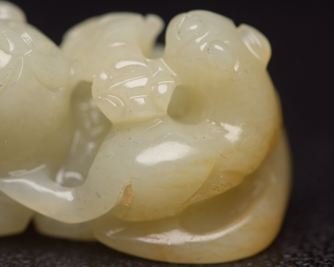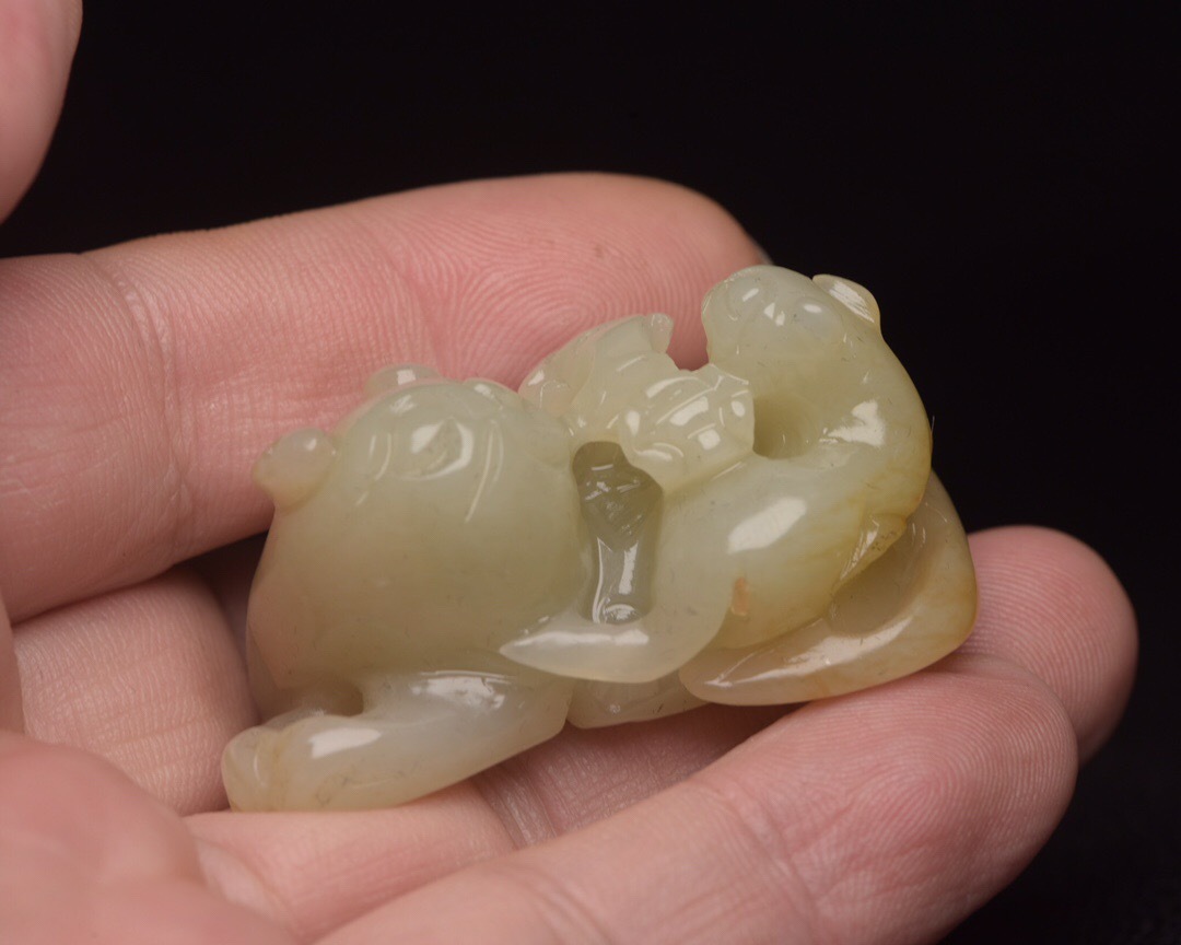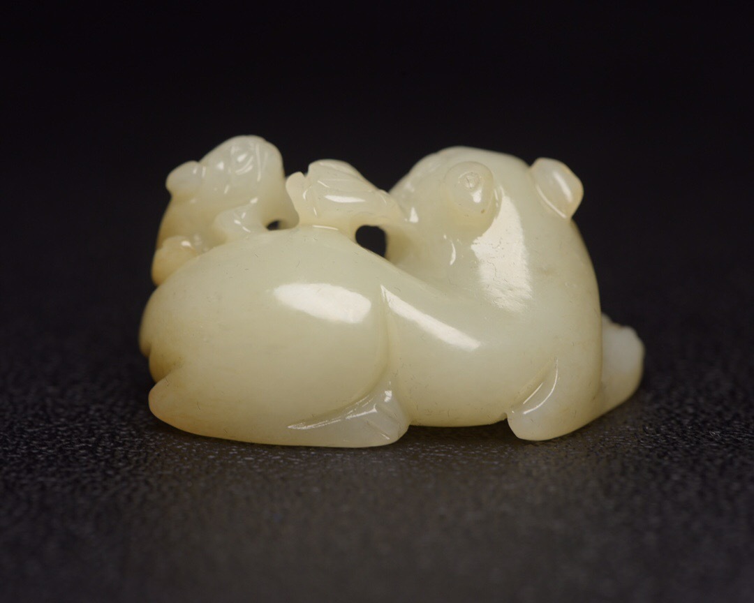 【超珍館蔵】和田玉製 細密彫 子母獣 置物 賞物 古賞物 古董品 古美術品 時代物 旧家蔵出 稀少珍蔵品