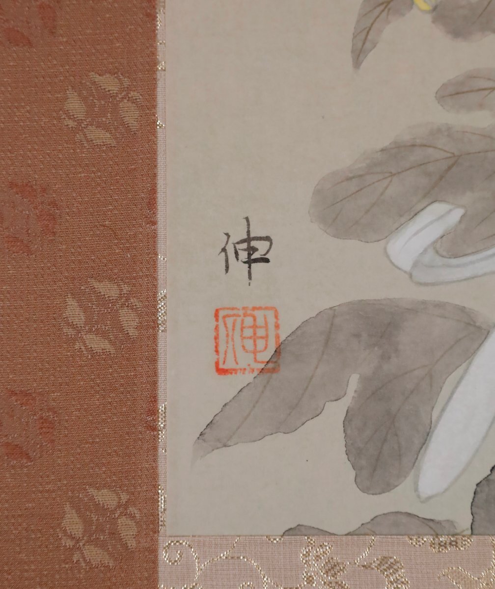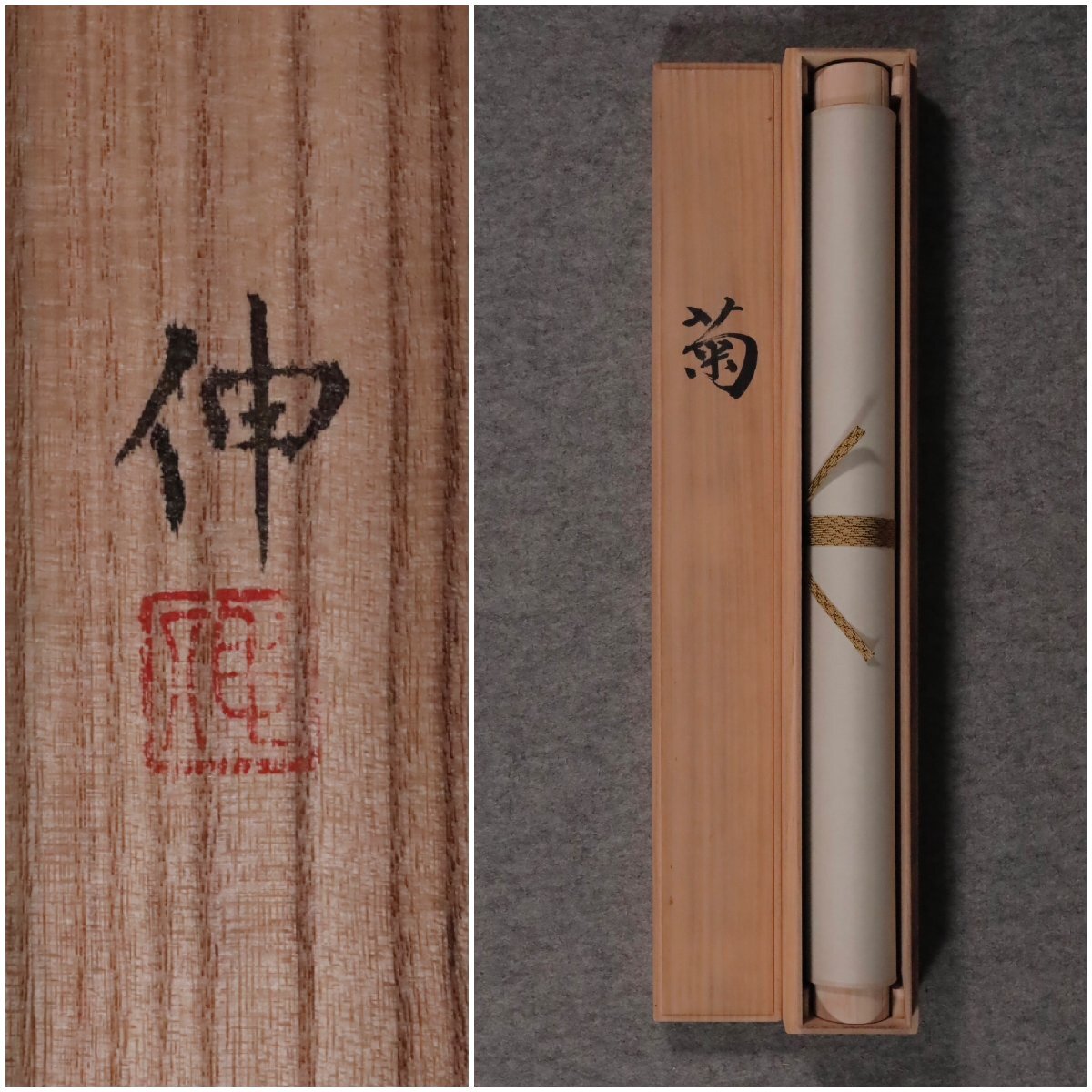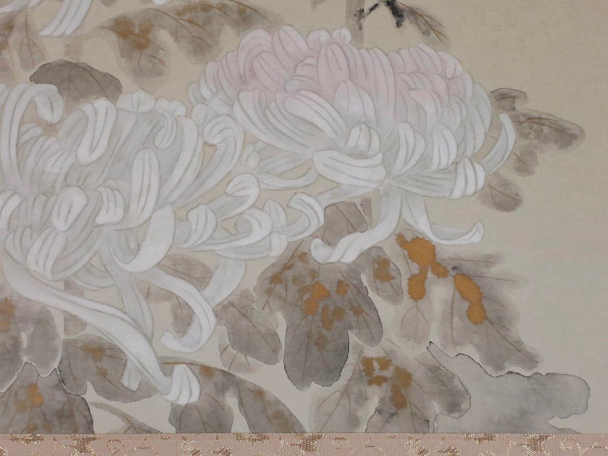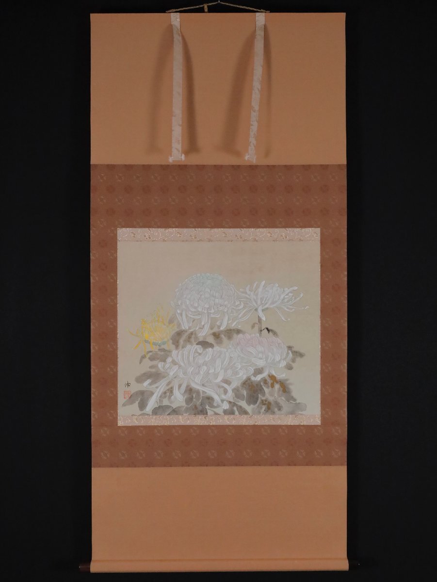 【模写】吉】12506 菊図 伸 作者不明 共箱 茶掛け 茶道具 中国画 掛軸 掛け軸 骨董品