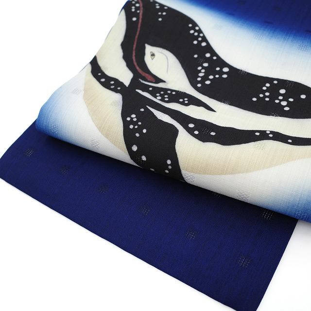 大胆なクジラの柄行が目を惹く おしゃれな カジュアル帯です。