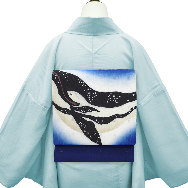 お太鼓部分には大胆に描かれたクジラの柄が、夏らしく遊び心のあるアクセントとなっています。