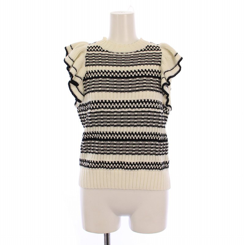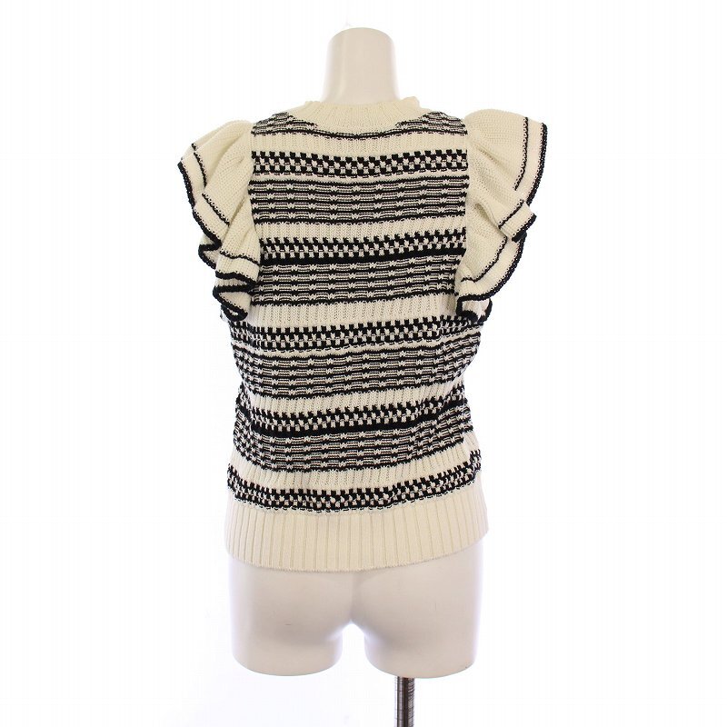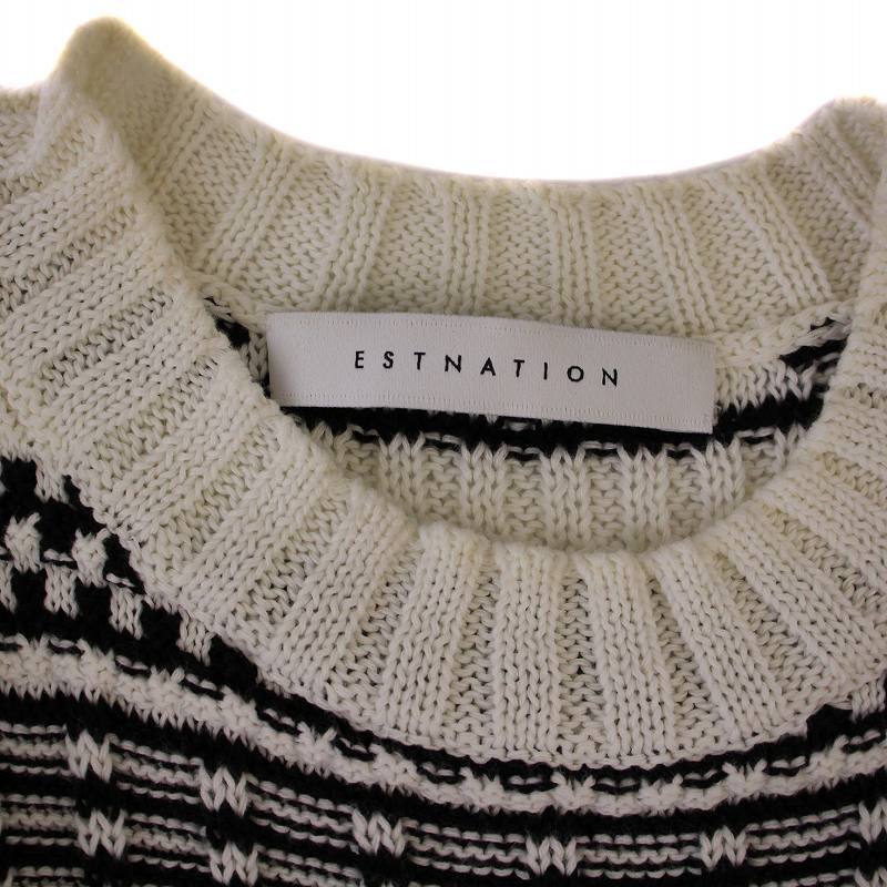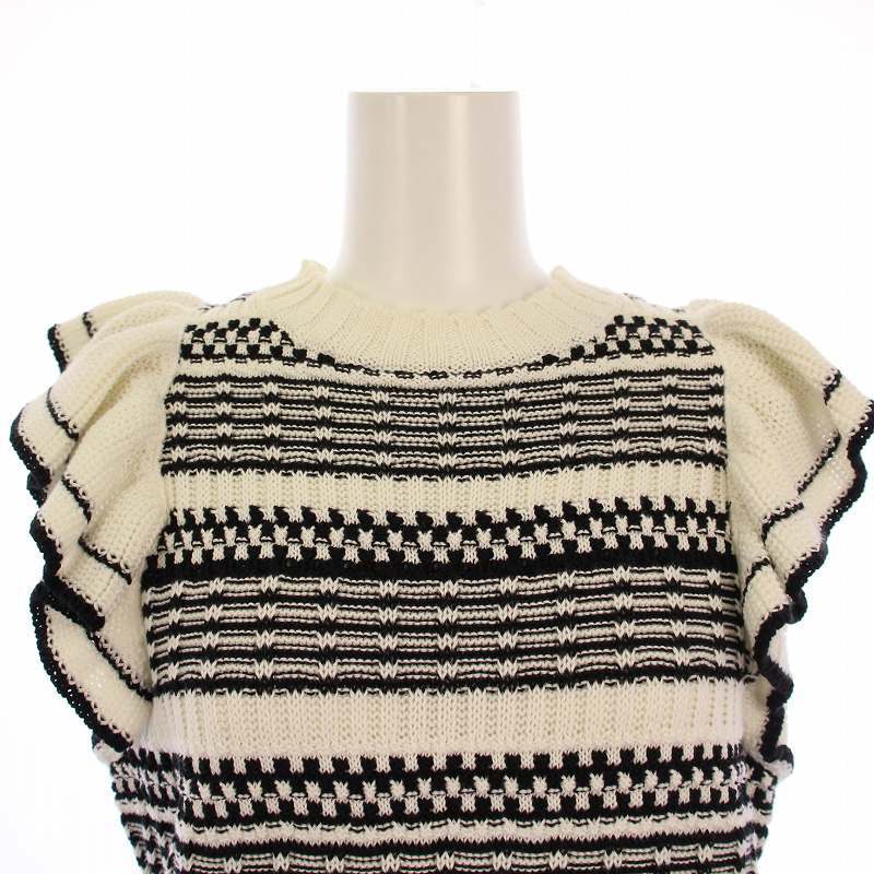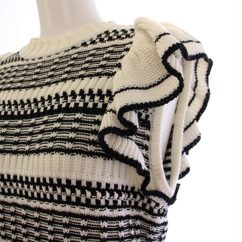 エストネーション ESTNATION ニット カットソー ノースリーブ フリル 総柄 38 白 黒 /BM レディース