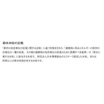 | 仕様 | JISマーク取得済 節湯C1、節湯B 節水水栓 エコ位置クリック 泡沫吐水 |
