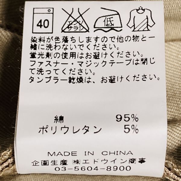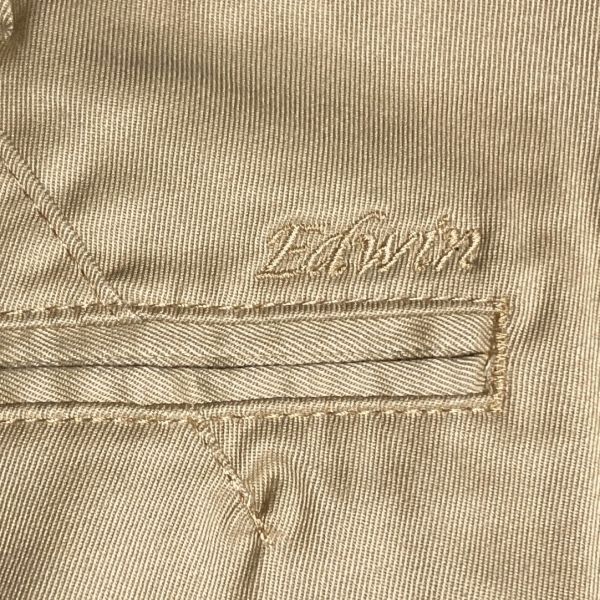 * 商品説明 * ■EDWIN エドウインのストレッチ ノータックチノパンツです■ ●足元をスッキリ見せてくれる美脚テーパード仕様 ●お色はベージュ系です ●右ヒップポケット上にロゴ刺繍入り ●ジップフライ ●ノータック ●ウエスト両サイドボタンアジャスターつきで5cm調節可能 ●ストレッチ入り ●(株)エドウイン商事 ★画像の色ですが、撮影状況やお客様が使用されているPC、スマホ環境等により、本来の色が伝わりにくい事がございます。どうぞご了承下さいませ。 ■素材→綿95% ポリウレタン5% ■サイズ表示→35 (ウエスト88) <<<実寸 ウエスト95 平置実寸 股上30 渡り35 裾幅23.5 股下77>>> ★手計測ですので誤差があるかと思います。あくまで目安としてご参考下さいませ。 ■商品状態■ 特に汚れダメージは見当たりませんが、なにぶんUSEDになりますので、その他細かなところを気にされる方、神経質な方はご遠慮ください。 ■基本的にノークレームノーリターンでお願い致します(目立った汚れダメージの記載漏れなどの明らかな当方のミスを除く) ■USED商品に関しては、それぞれの生活環境が違う為、USED商品の特性上、多少の匂いはございます。匂いの感じ方には個人差があり、あくまで当方の基準での出品になりますので、ご了承の上ご入札をお願い致します。 ■まとめて取引(同梱発送)について■ 同じ週の終了分(月曜日~日曜日締めまで)のみ 同梱発送をお受けさせて頂きます (但し、規定により最初の落札時間から72時間以内に落札された商品で20点までが対象です) ※まとめて取引の発送は おてがる配送(ゆうパック または宅急便コンパクト)のみとさせていただきます