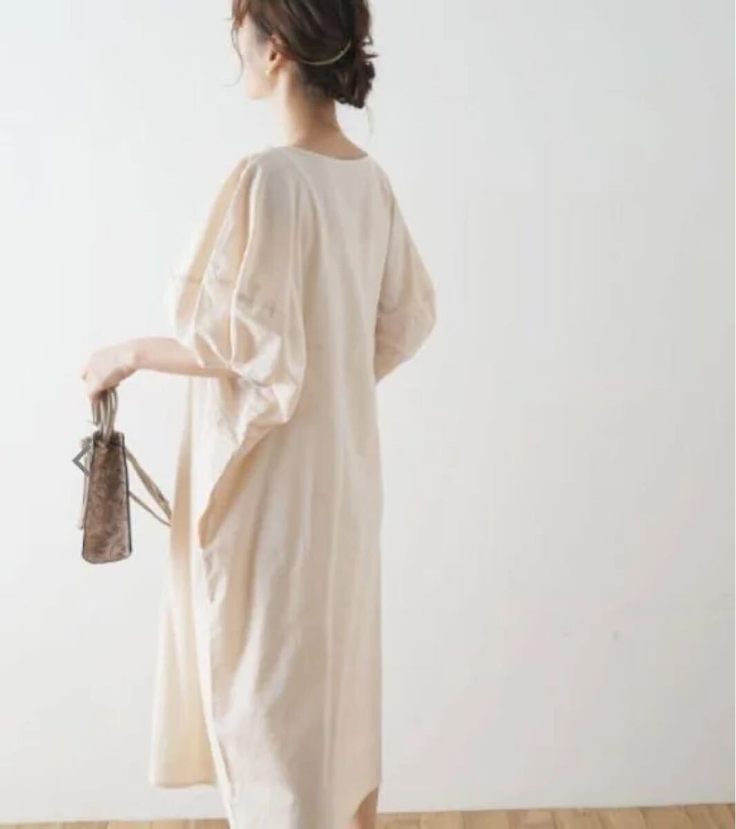 Futier land バルーンスリーブ コクーンシルエット リネン混 ワンピース
