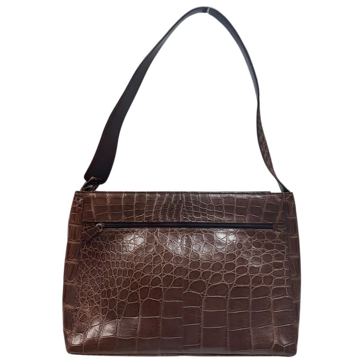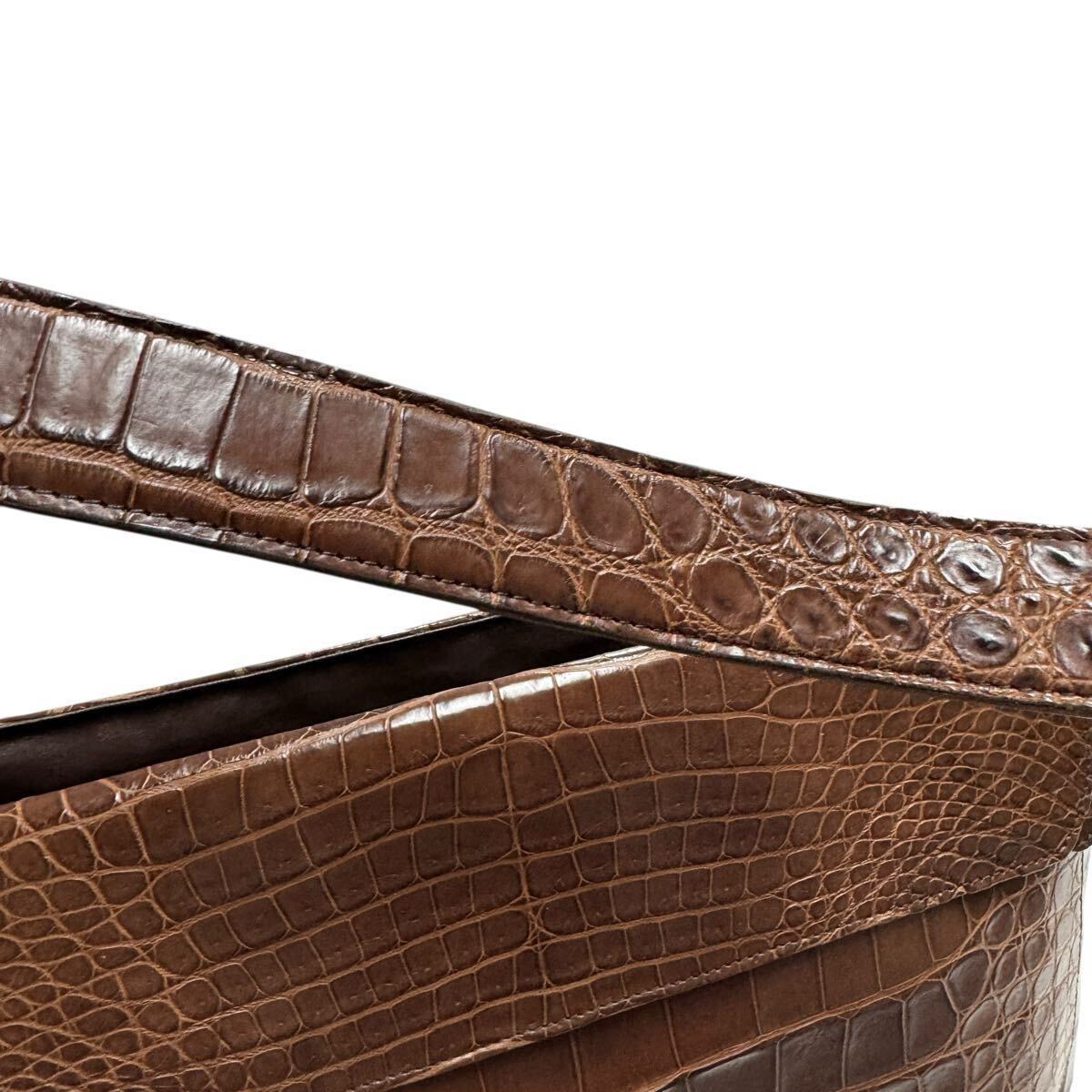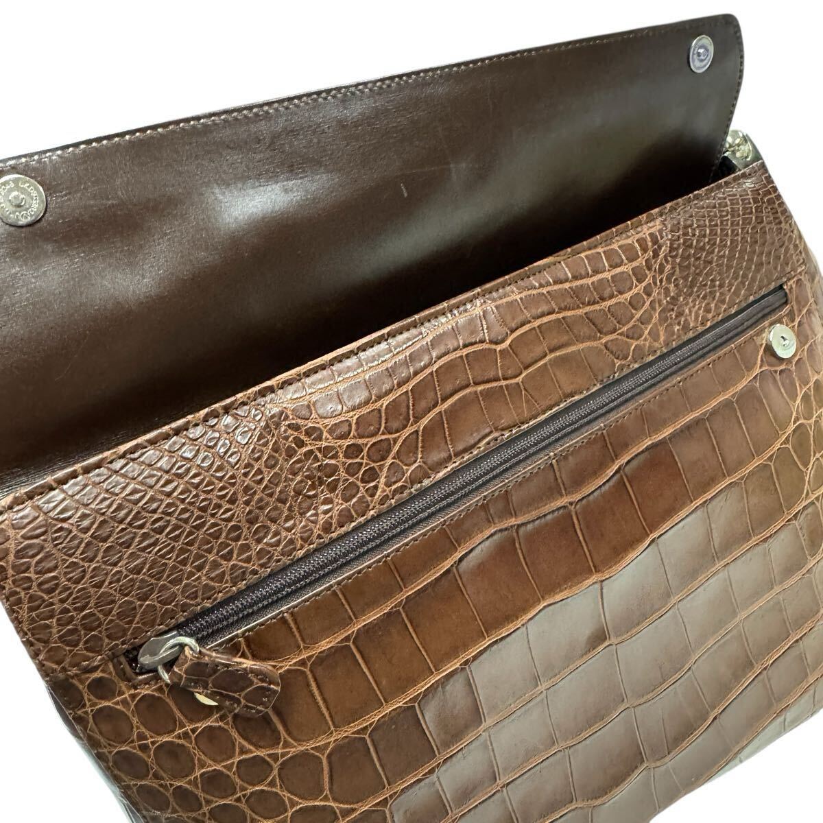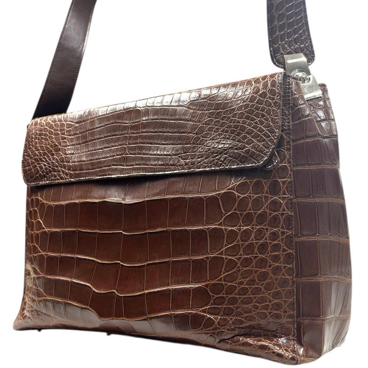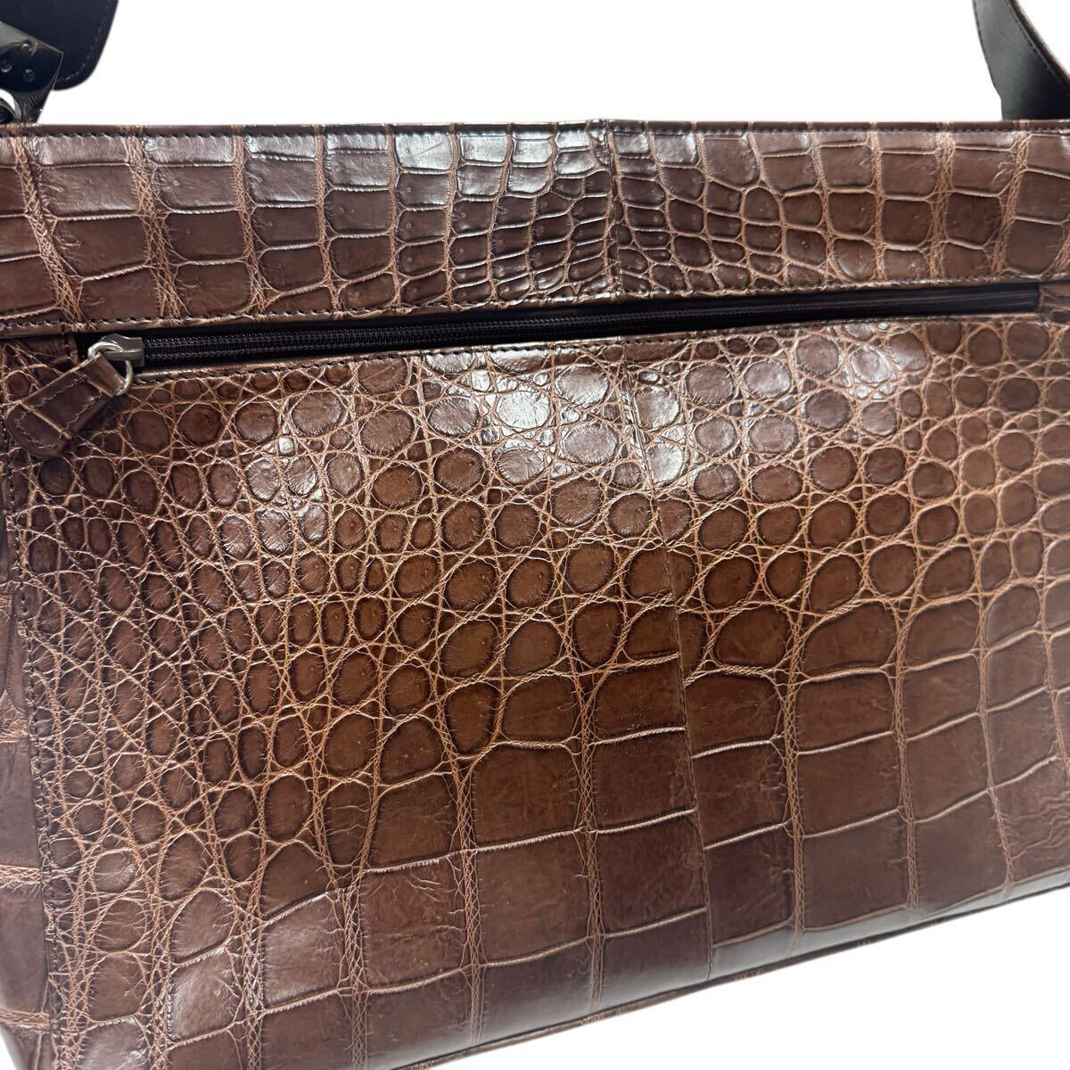 マットクロコダイル ワニ革 センター取り メンズ ショルダーバッグ A4収納 大容量 ブラウン リアルクロコ