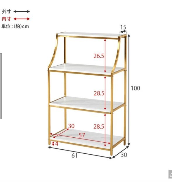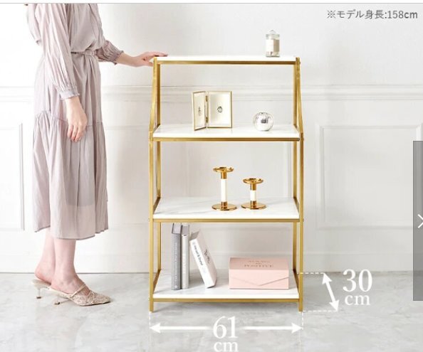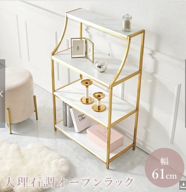 こちら在庫変動しますのでご注文前に必ず在庫のお問い合わせをおねがいします。送料無料離島沖縄北海道は別途お見積りです。廃盤の場合を除き理由の如何にかかわらずキャンセルはできません。特価! 定価55000円↓お部屋を華やかに彩る、エレガントな大理石調の棚板とゴールドのフレームが特徴のオープンラック■本体サイズ:(約)幅61×奥行30×高さ100cm■組立式苦手でない限り簡単にできます。■アジャスター付下記よくお読みのうえお願いします。 他サイトでも販売しておりますので、タイミングによっては完売となっている場合がございます。 入札前に在庫の確認を質問欄からお願します。 ご質問ないまま落札され、決済をされた後、在庫がなくお届けできない場合は決済手数料を引いてのご返金となります旨あらかじめご了承くださいませ。