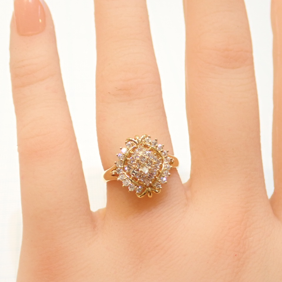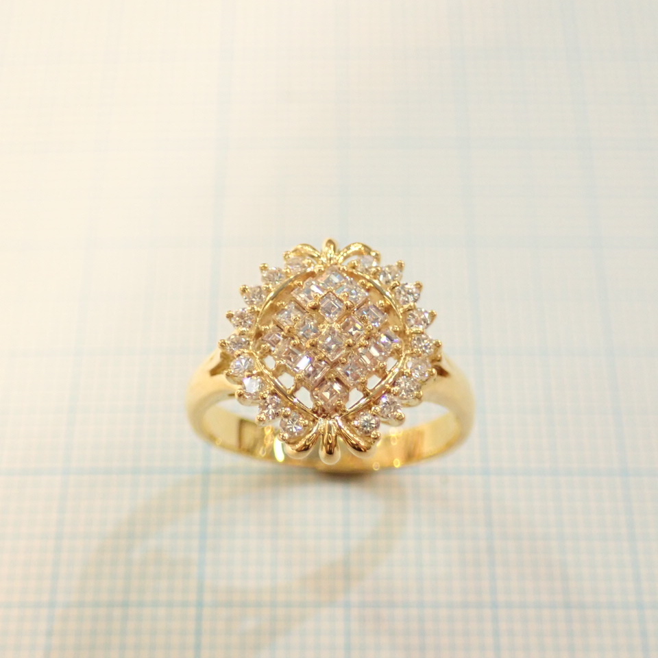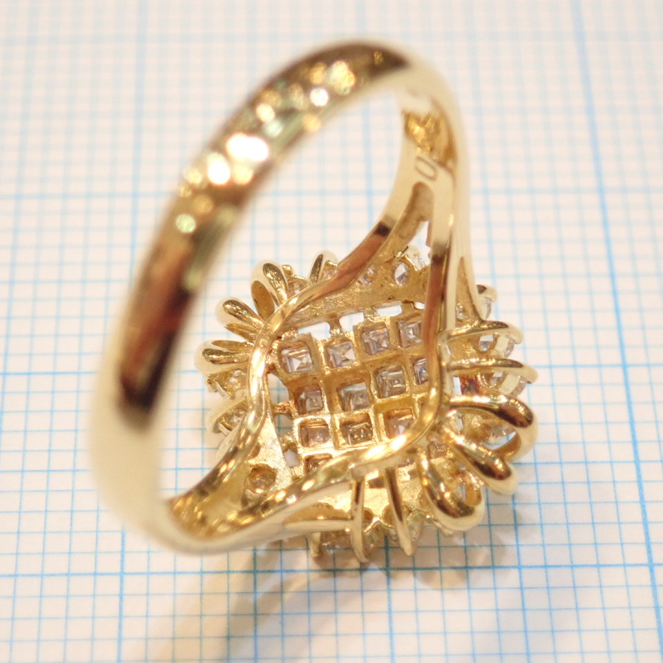 ■K18YG ダイヤモンドファッションリング D:0.54ct■スクエア・ブリリアントカット■指輪■中古磨き仕上げ■