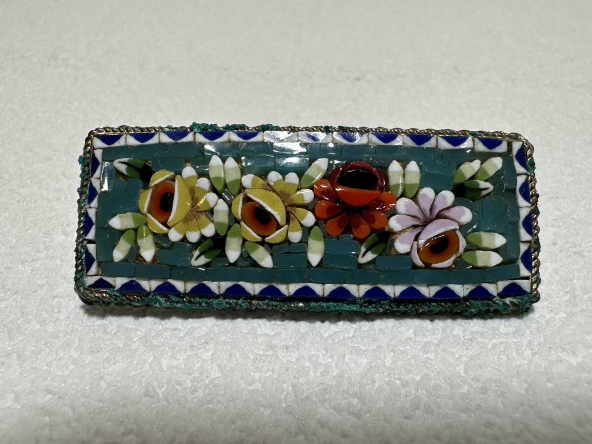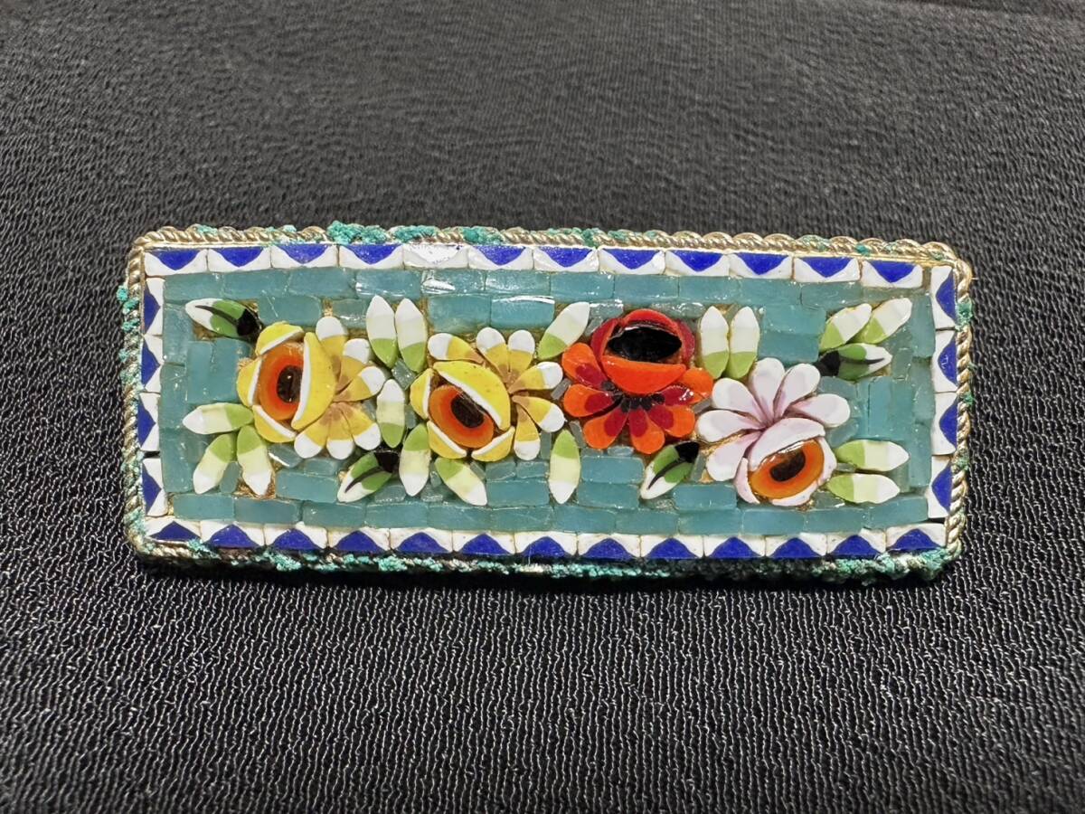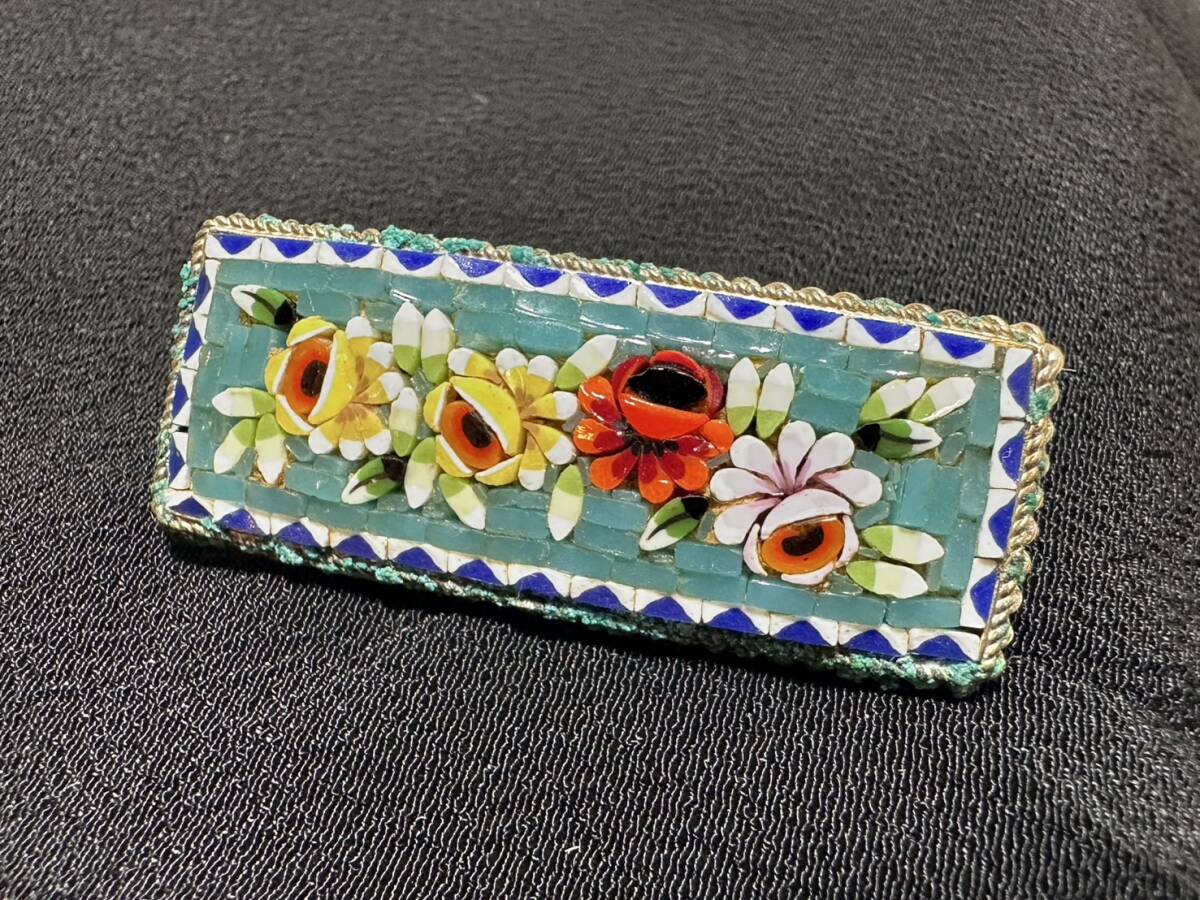 ブローチ 【rry752 マイクロモザイクブローチ 花柄 モザイクガラス ローマンモザイク 時代物 レトロ アンティーク ヴィンテージ】