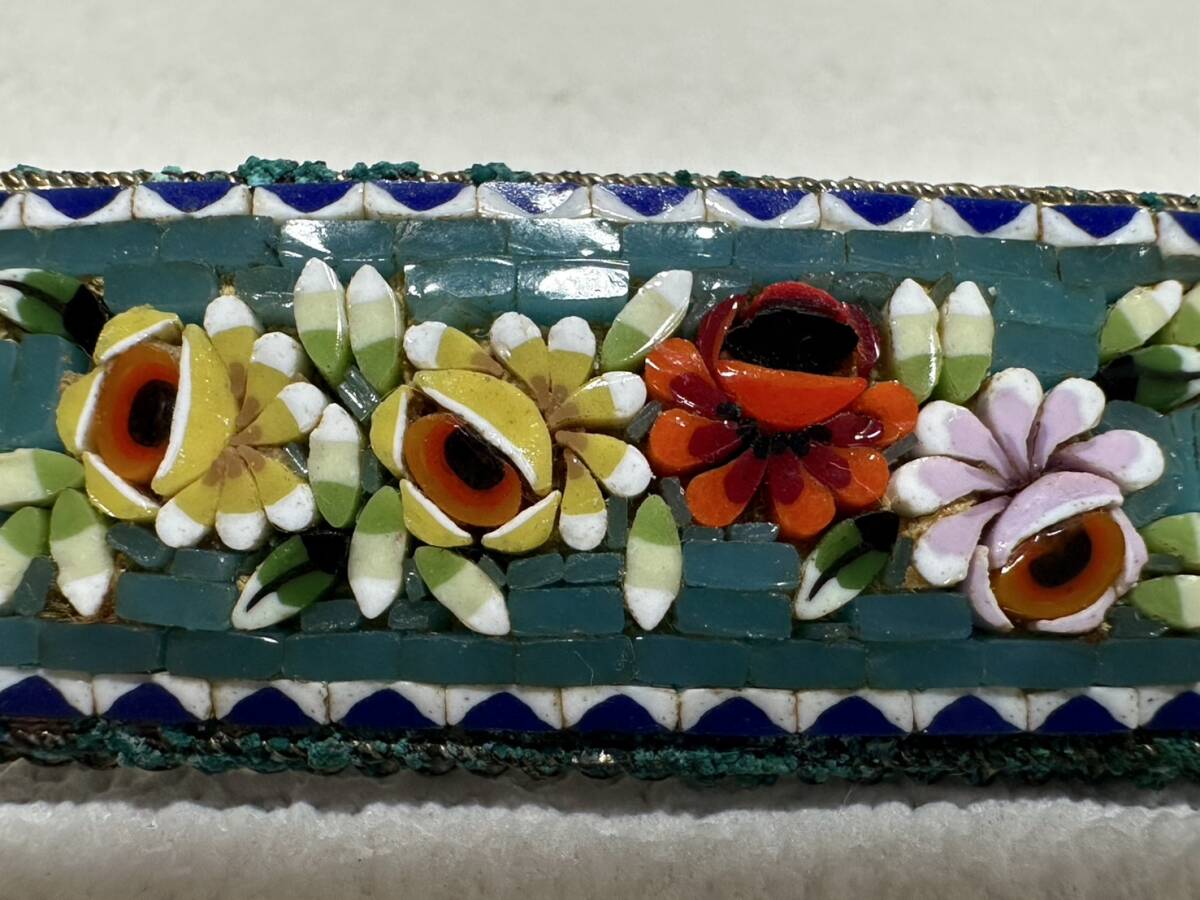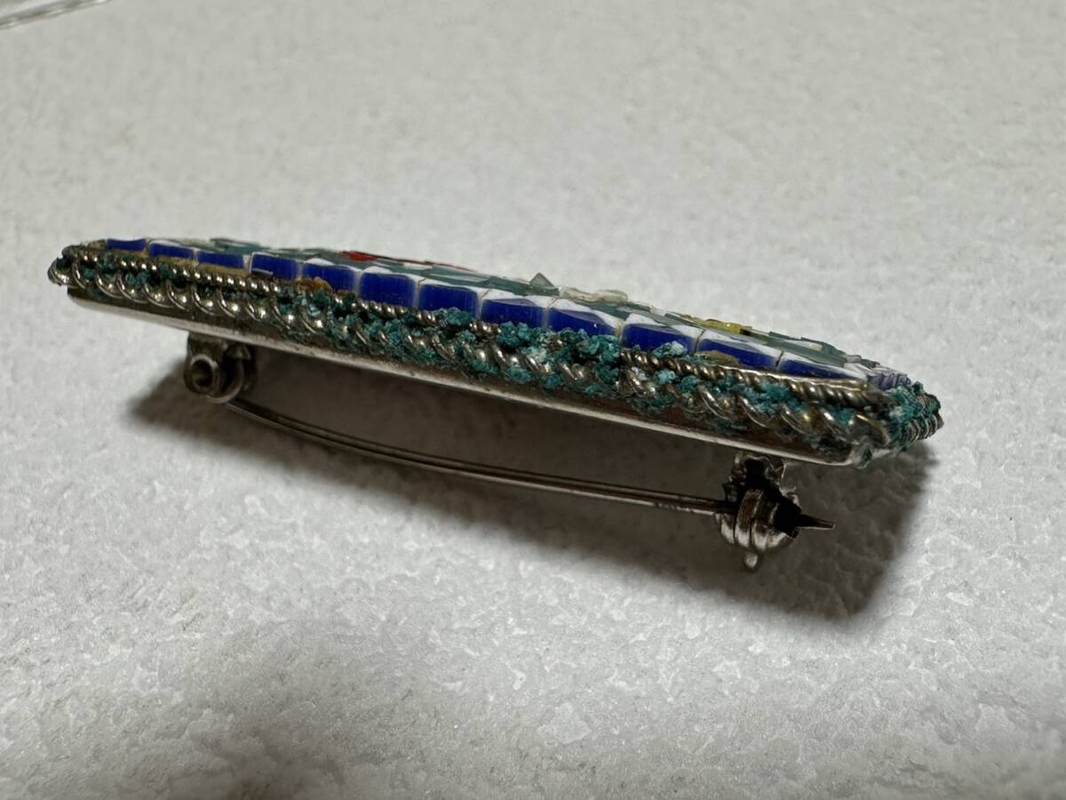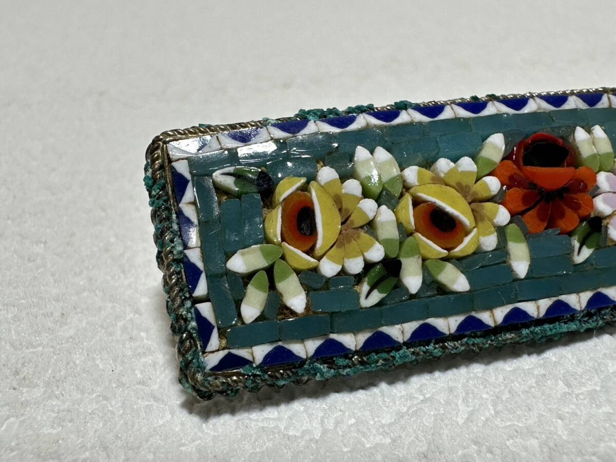 ブローチ 【rry752 マイクロモザイクブローチ 花柄 モザイクガラス ローマンモザイク 時代物 レトロ アンティーク ヴィンテージ】