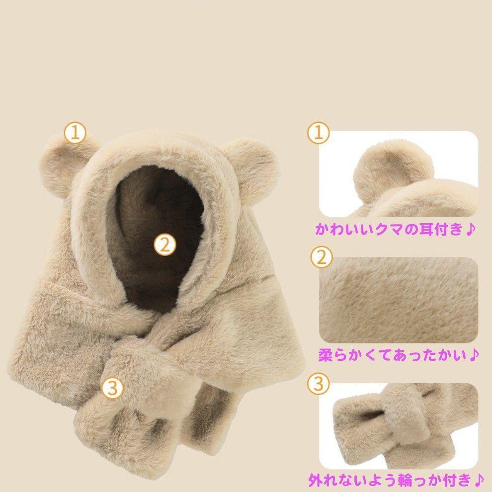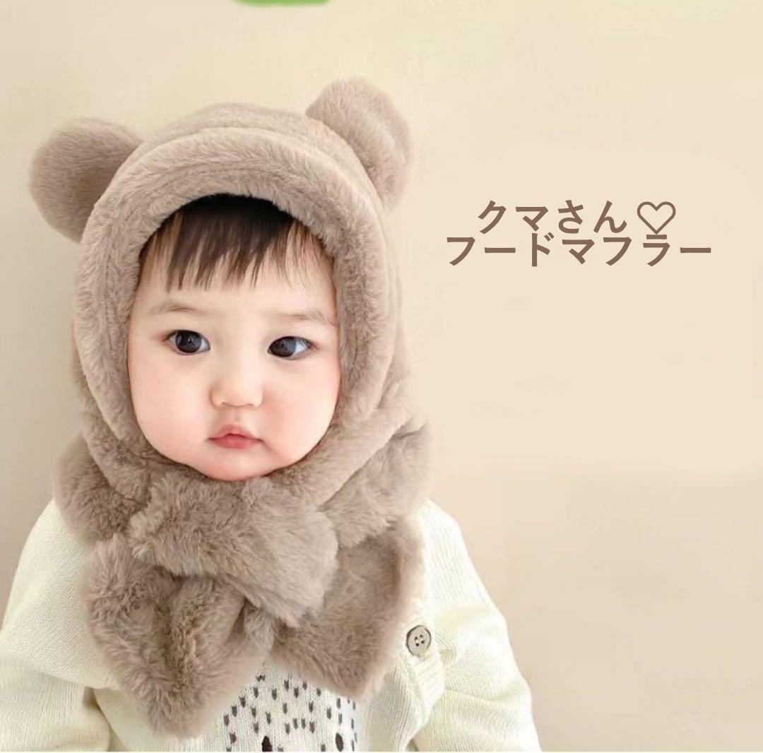 マフラー 帽子 フード付き くま耳 クマ耳 つけ耳 ファー かぶりもの くま クマ くまさん クマさん くまちゃん テディベア キッズ 子ども 子供用 子ども服 キャラクター 園児