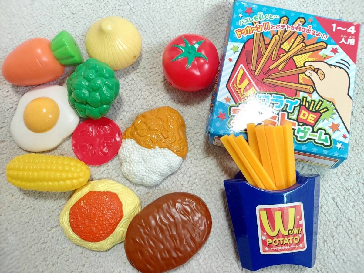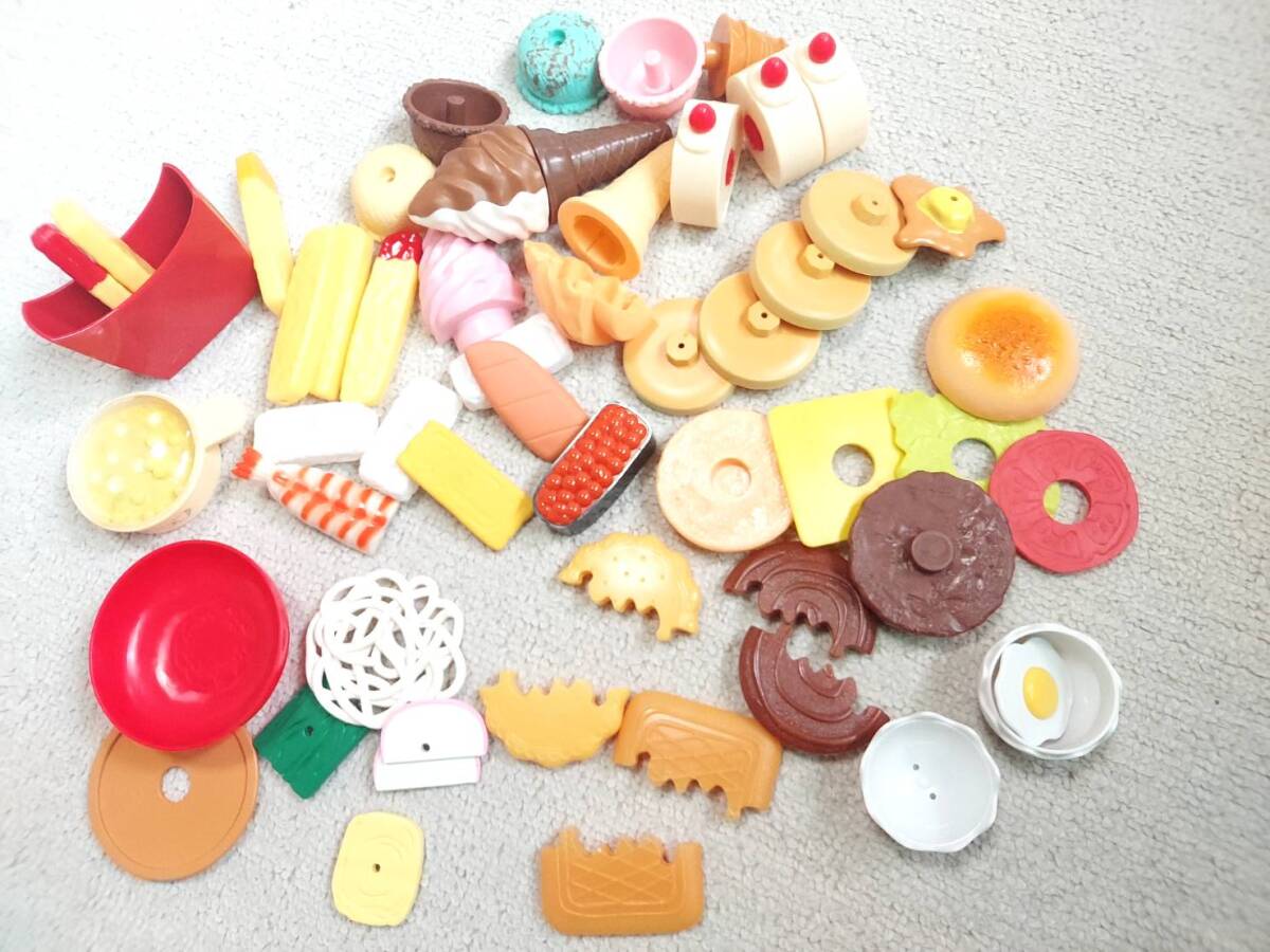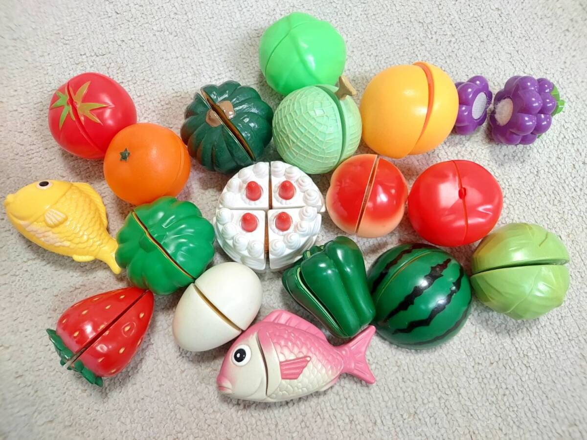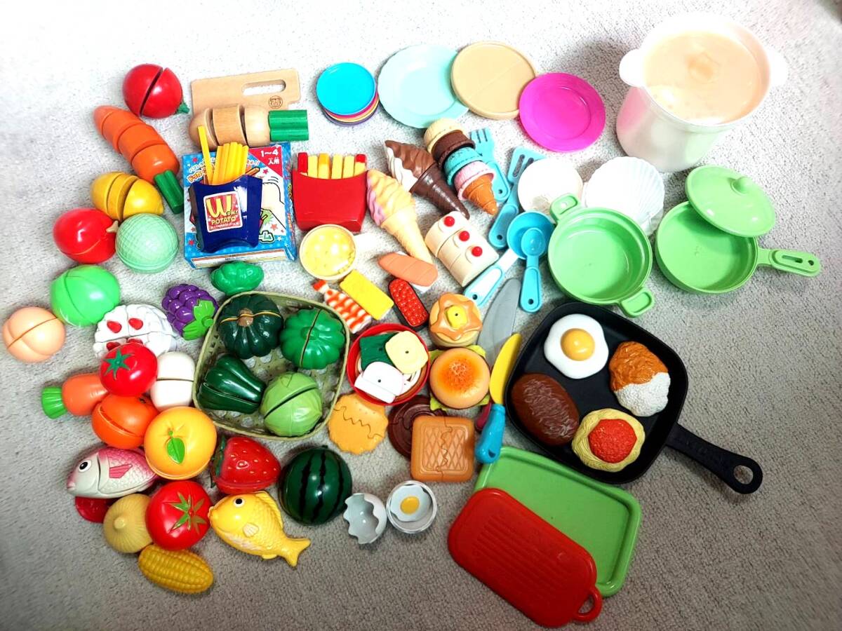 ◆擦れ傷や擦れ汚れがあります。マジックテープマジックテープのものはテープがだめになったものはありませんが、くっつきが悪いものはあります(ぶどうが一番あまりくっつかないように思います)。カットできる卵は白いからか一番使用感のある見た目です。雑誌の付録についていたものが個人的にはおもしろいなと思っています。全てマジックテープ部分以外のところは除菌スプレーをつけた布で拭いています。食器系は本物の食材についていたものもあります。ばらばらですし、気に入らないものはお捨てください。画像をご参照のうえご不明点はご質問ください。