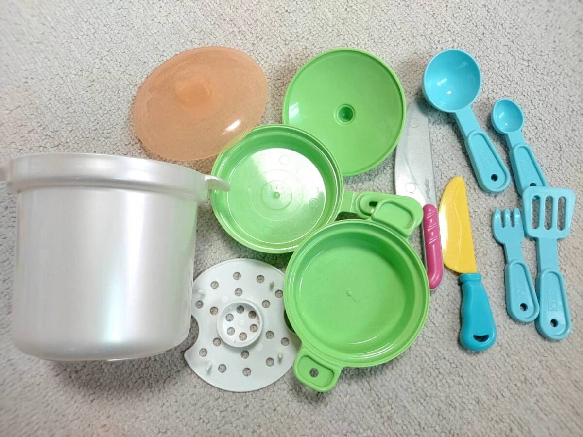 USED☆ままごとセット 野菜・フルーツ・皿・なべ・包丁・フライパン・フライドポテト・ハンバーガー・アイスクリーム・ケーキ・うどん等