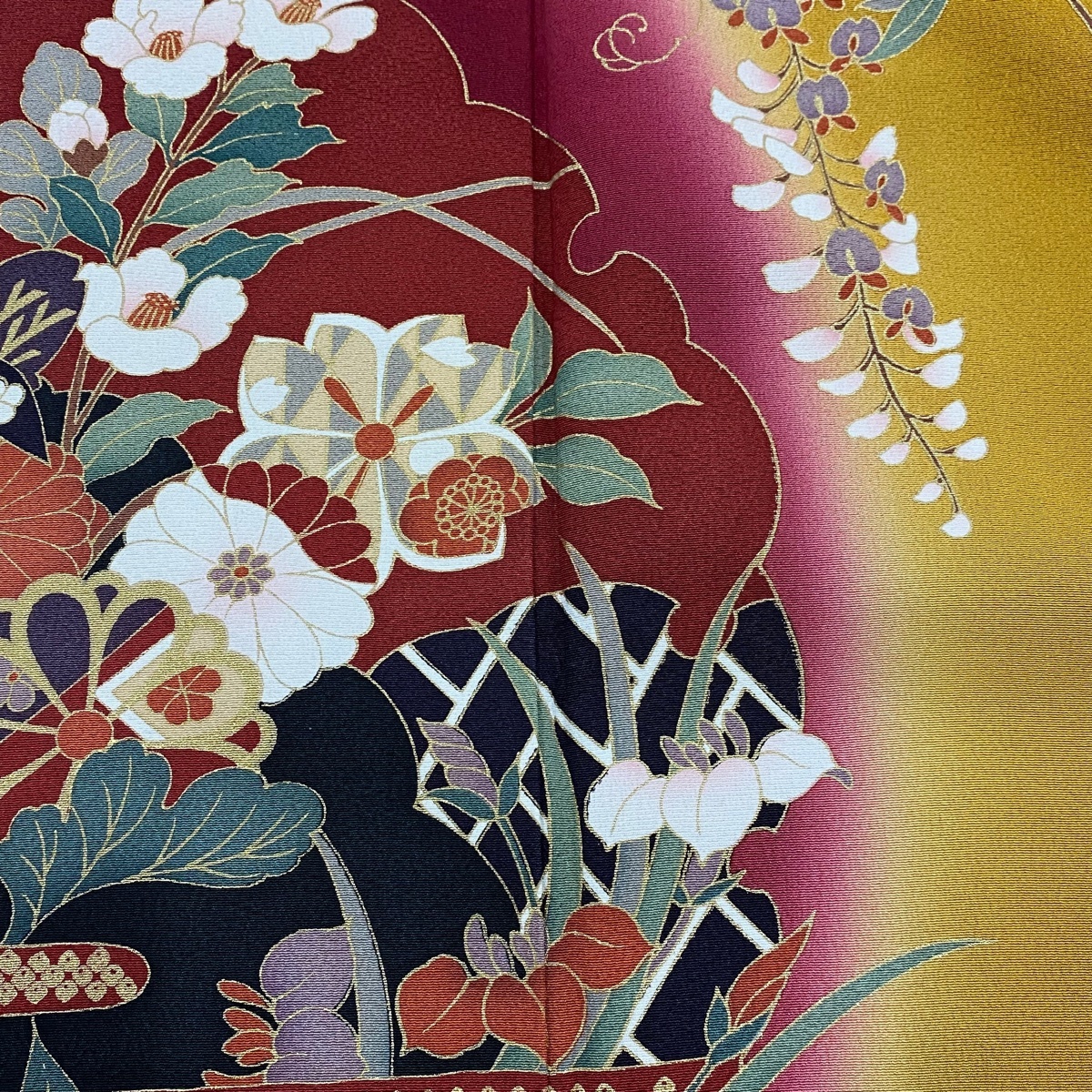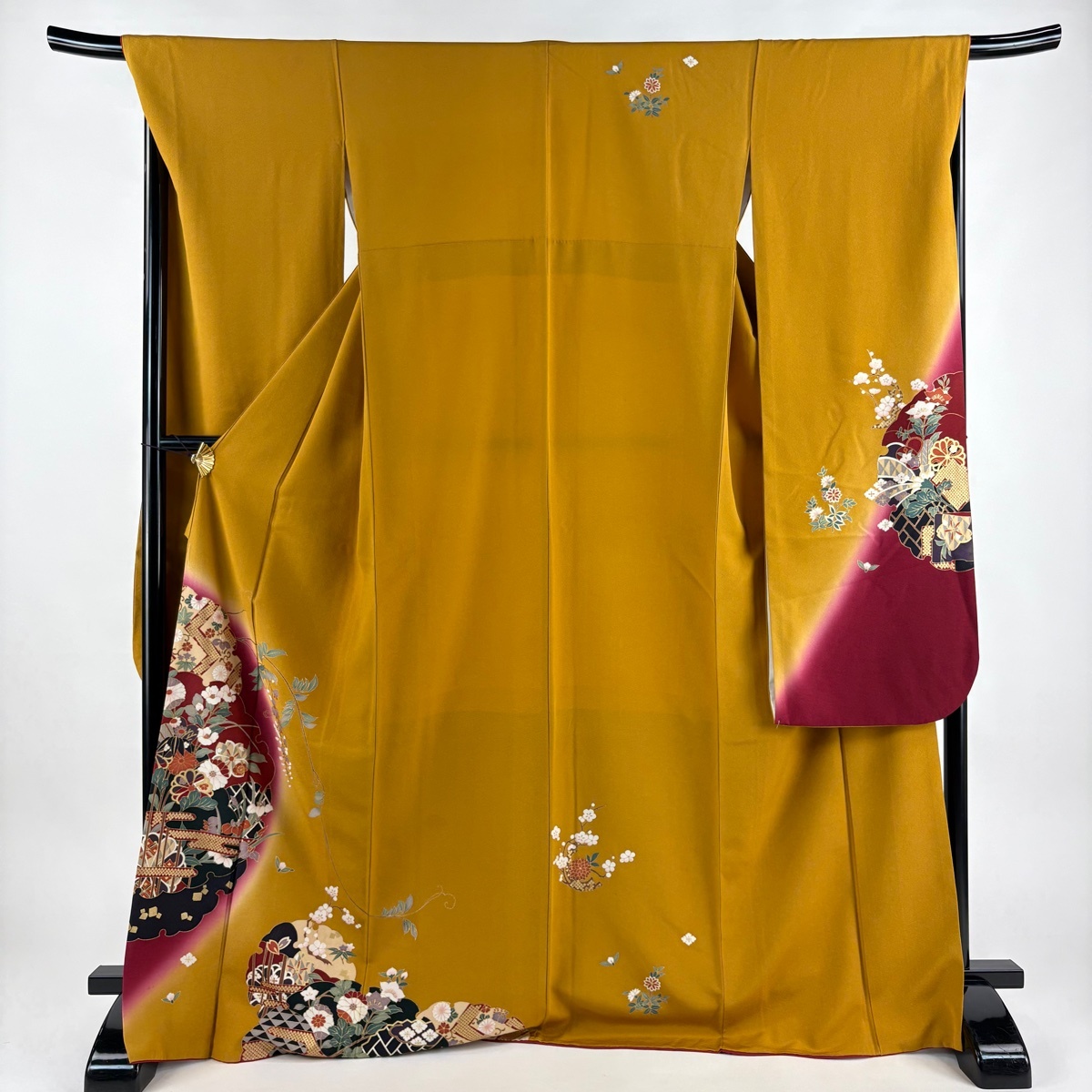 振袖 秀品 雪輪 菊 金彩 ぼかし 黄土色 袷 身丈170.5 裄丈66.5 M 正絹 【中古】 |