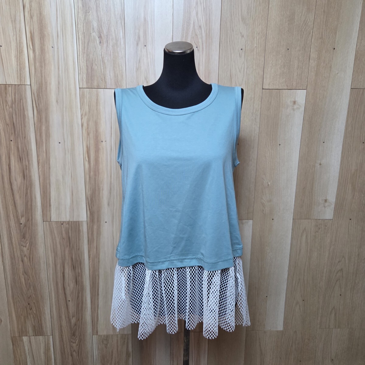 超美品 RITSUKO SHIRAHAMA リツコシラハマ★ノースリーブ 裾切替メッシュ タンクトップ