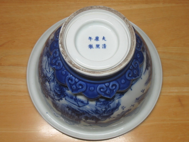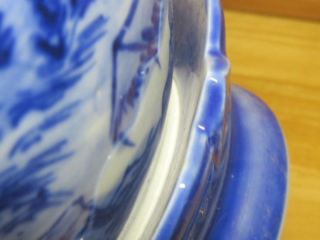 ★染付・山水図回り鉢★清朝/焼き物/完品★鉢と高台の間に隙間があり、そこが回る★骨董・レア・ビンテージ・レトロ・アンティーク・美品★