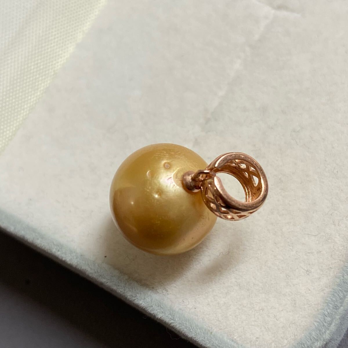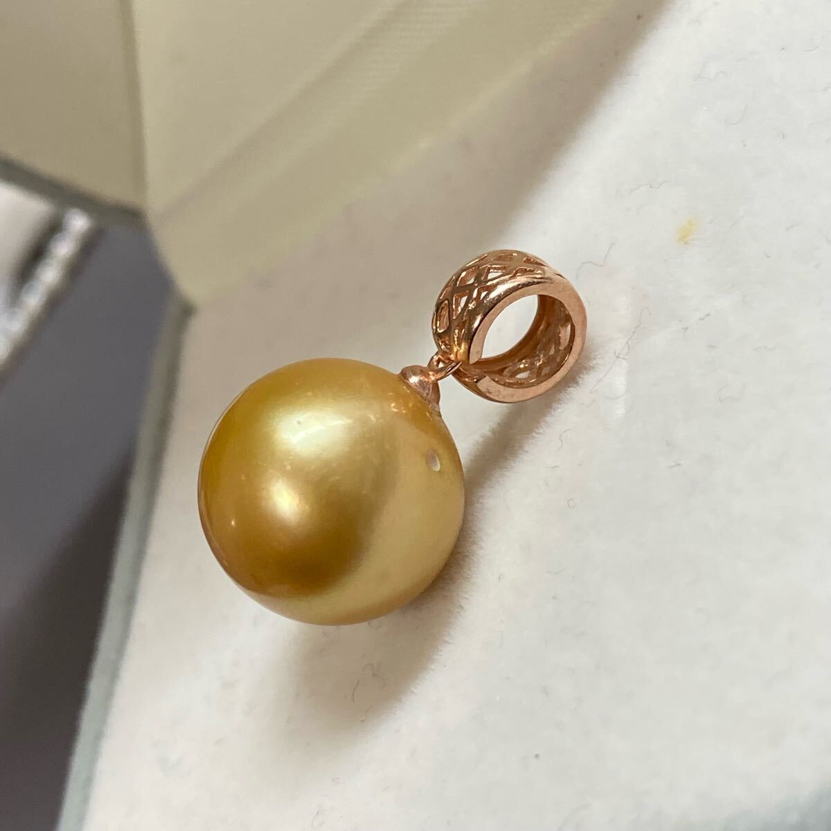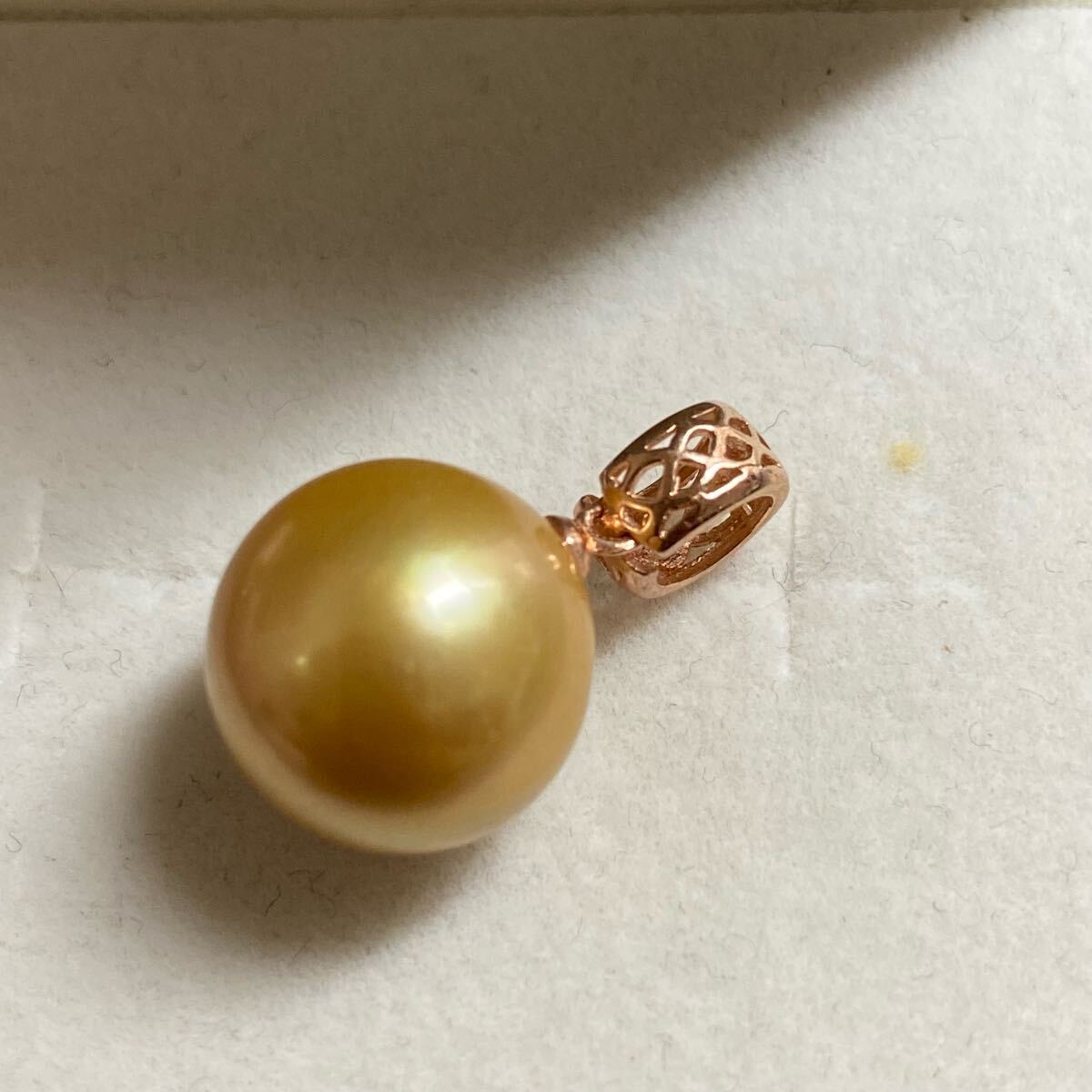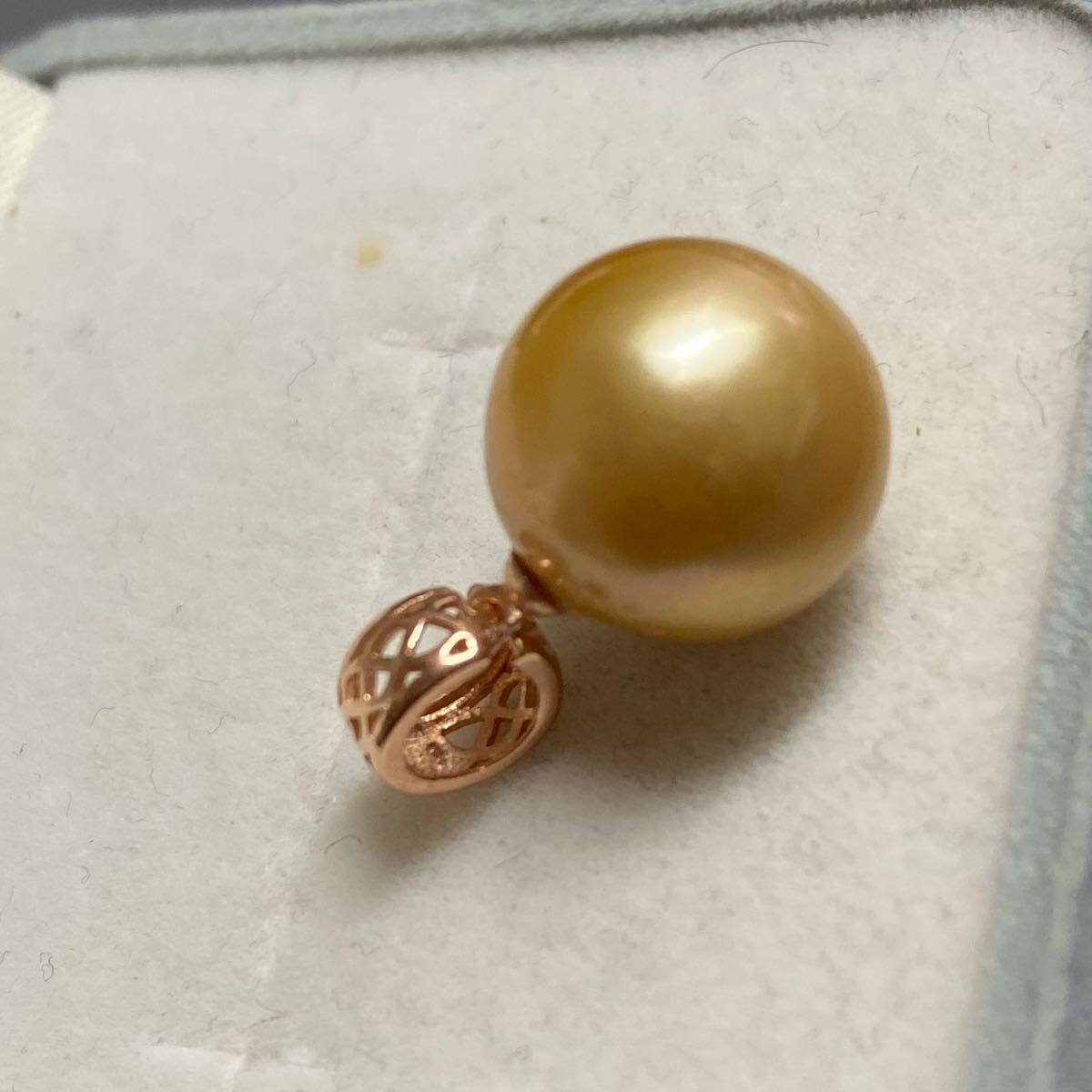 ゴールドの真珠とコーラル風デザインのペンダント。