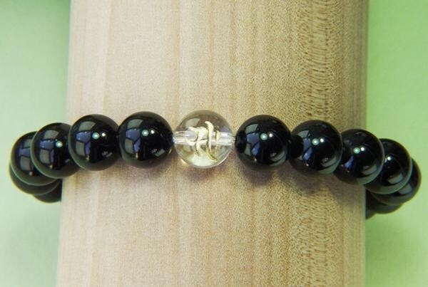 ◆宝石材質:天然ブラックトルマリン 20石、天然水晶 1石 ◆宝石玉サイズ=直径約10mm ◆長さ:約20cm |
